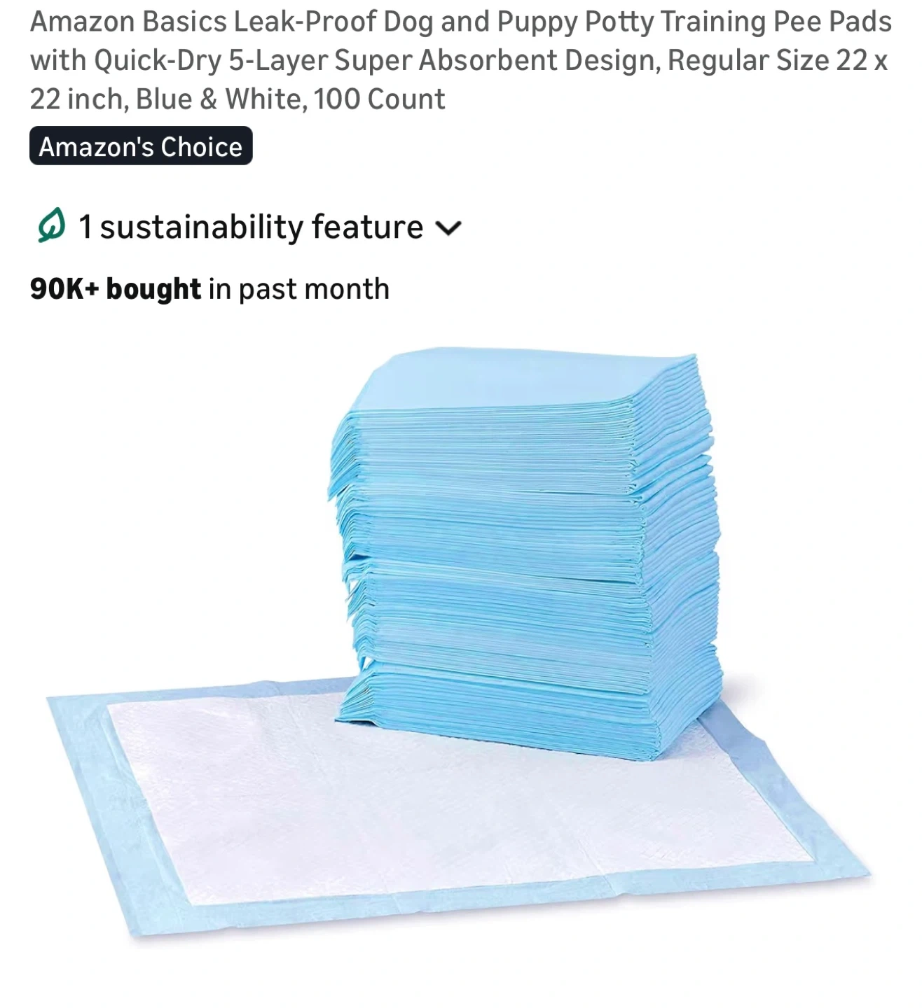 Amazon Basics Leak-Proof Dog Pee Pads - Regular Size, 100 Count
