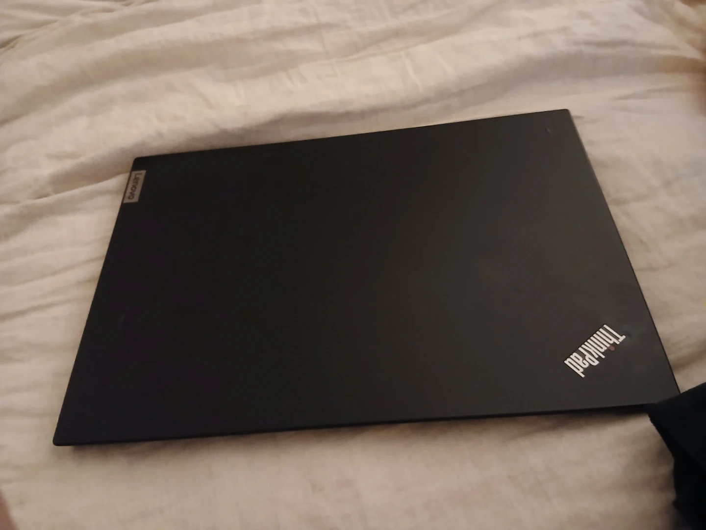 This is a black Lenovo ThinkPad laptop. It has a full-size keyboard with a number pad. It's a reliable machine for work or study.