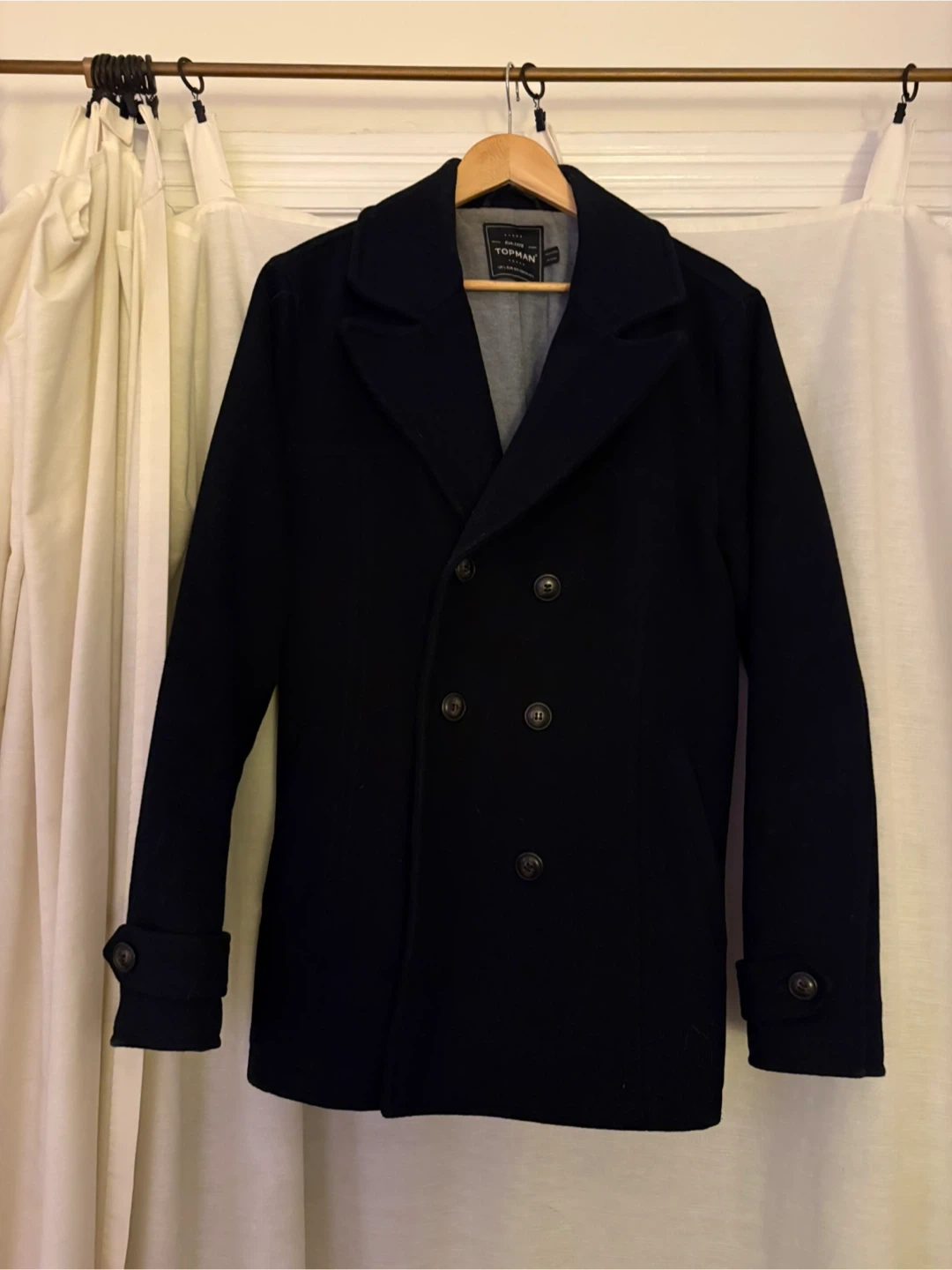 TOPMAN Navy Double-Breasted Peacoat - Size L