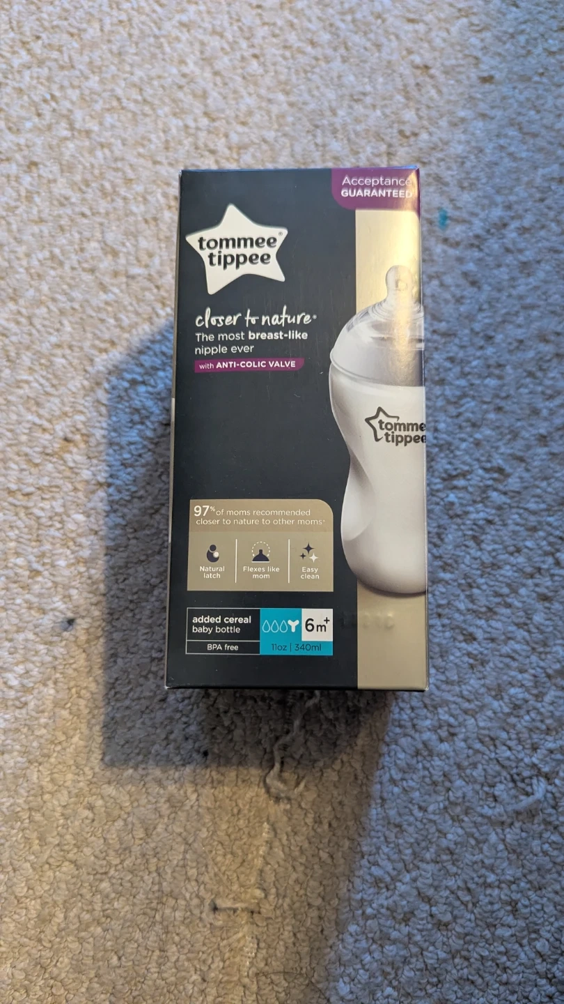 Tommee Tippee Closer to Nature baby bottle, 11oz/340ml. Features the most breast-like nipple with anti-colic valve. BPA free. New. Never used