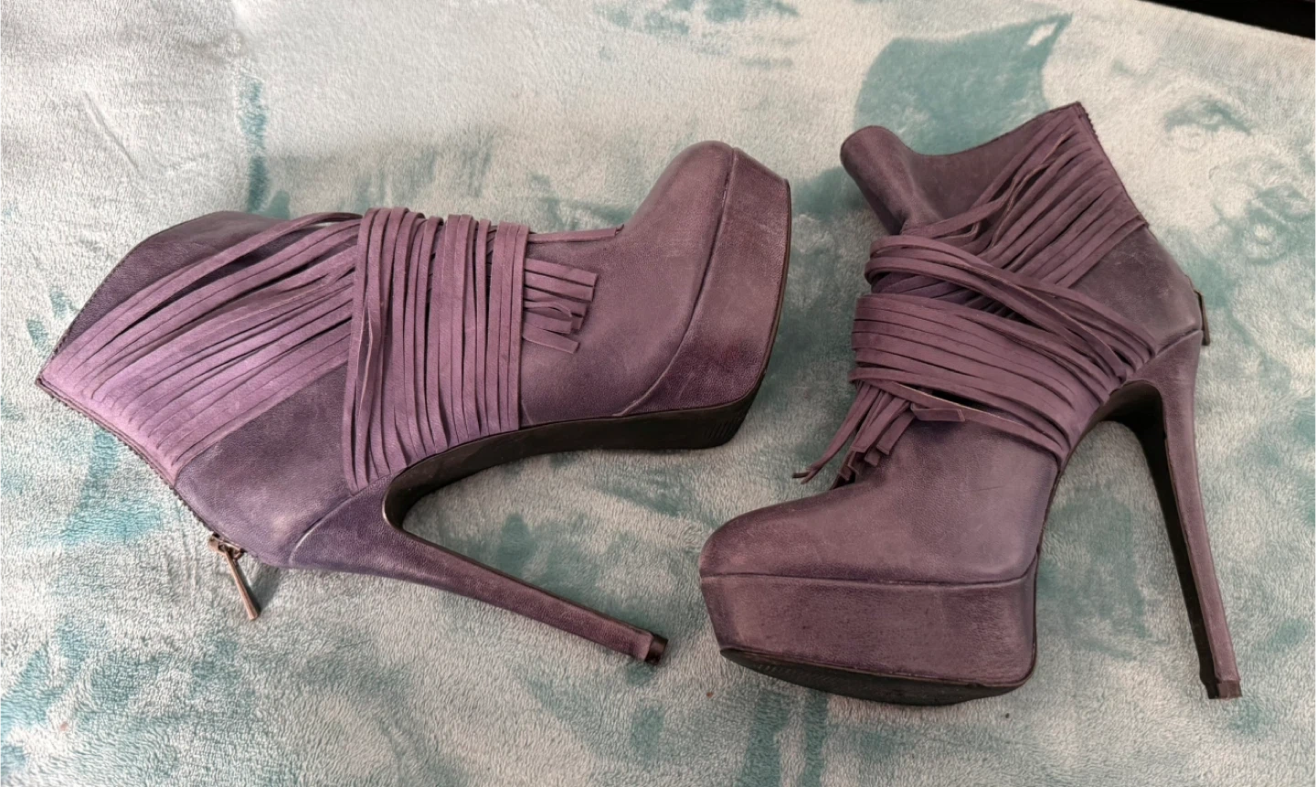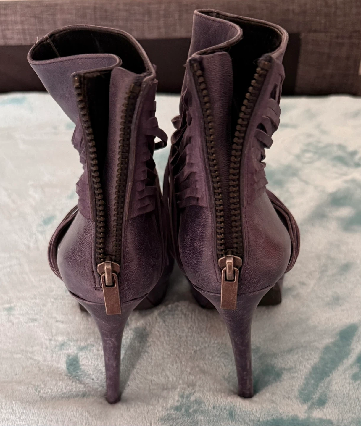 Jessica Simpson Purple leather Fringe Heeled Ankle Boots