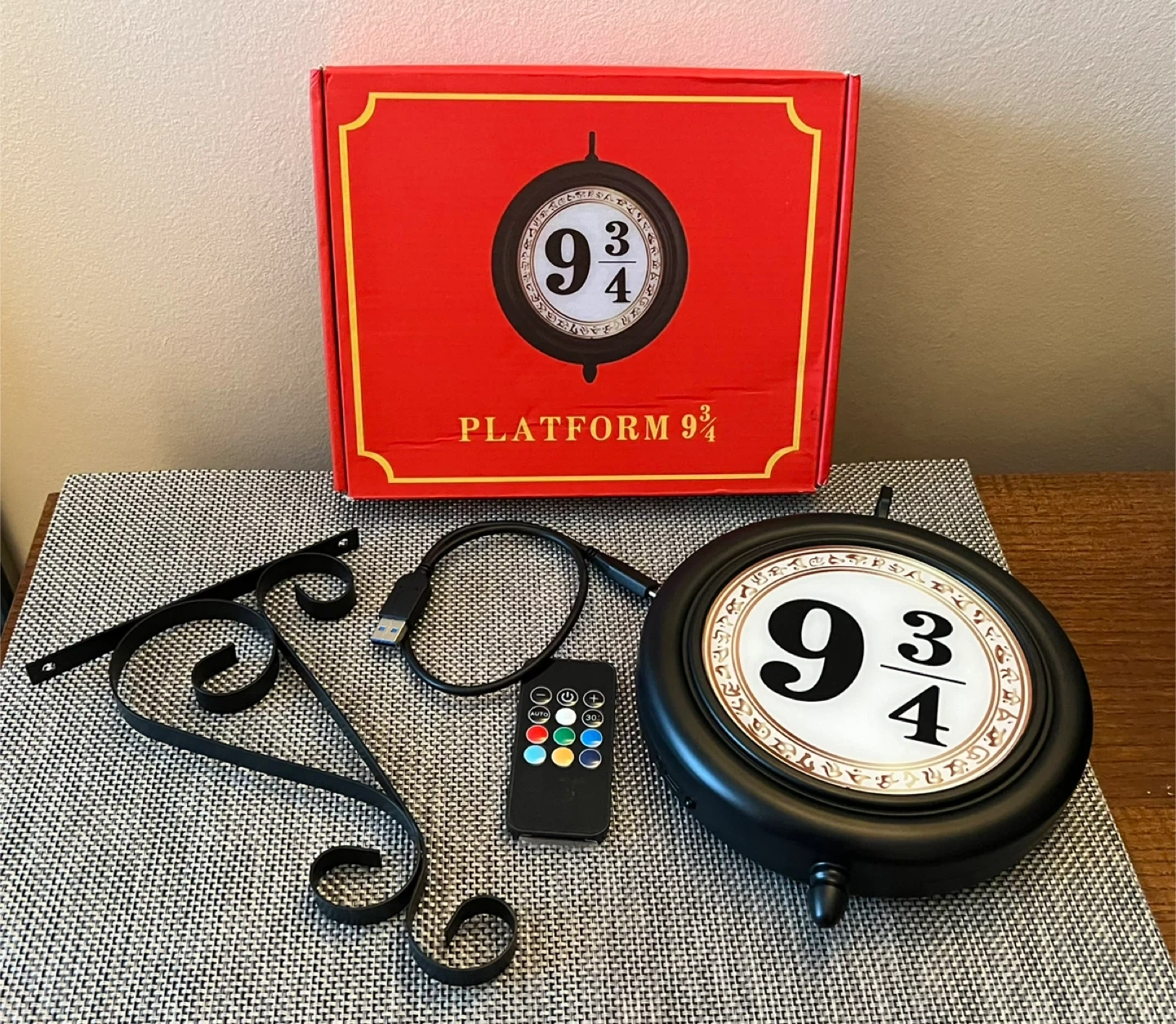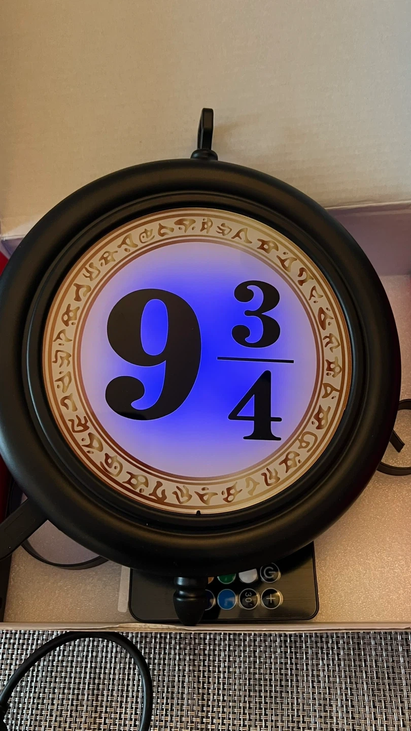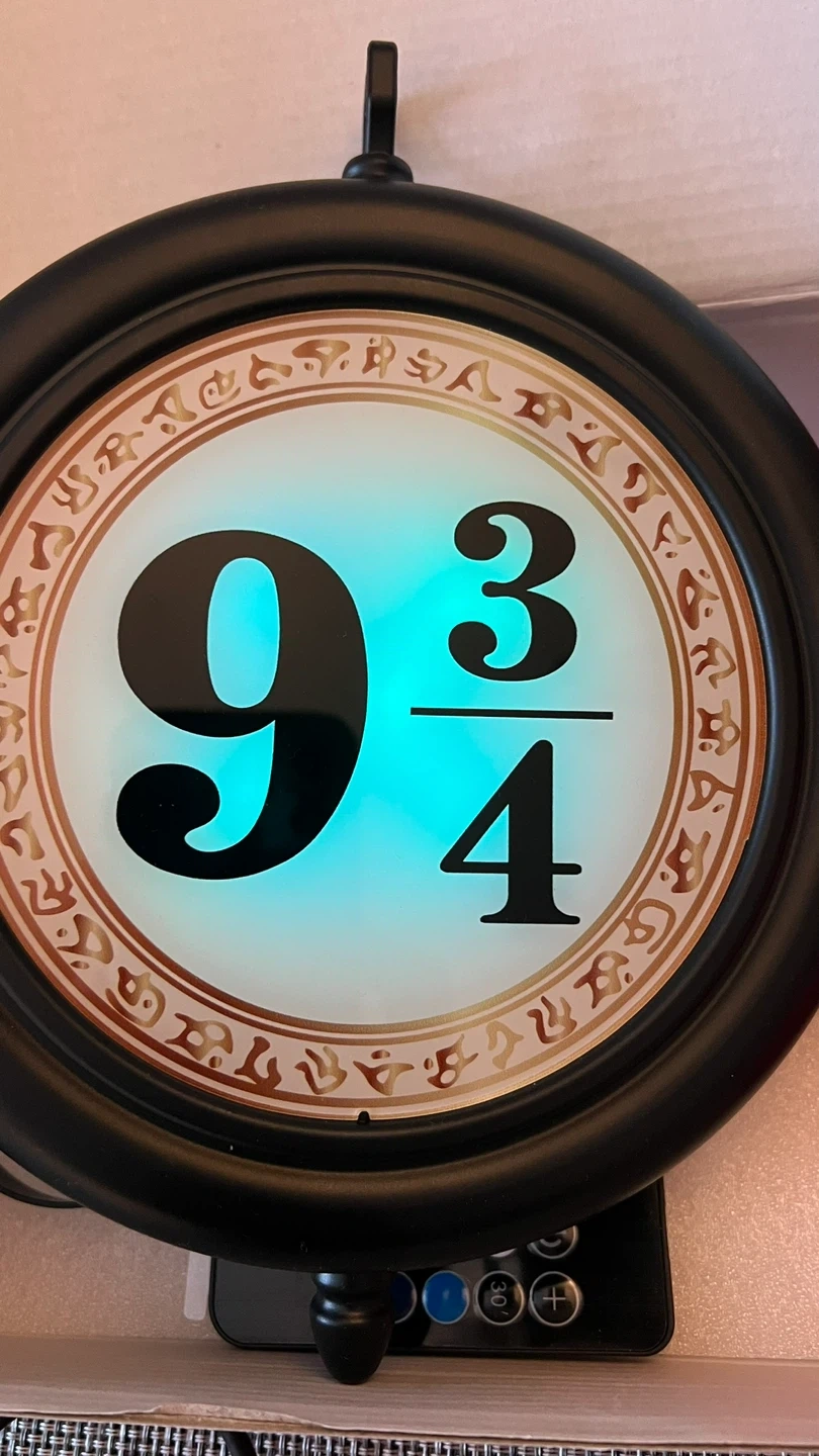 Hanging LED double-sided nightlight with remote control - resembles the Kings Cross Station sign for Platform 9 3/4 to the Hogwart’s Express!