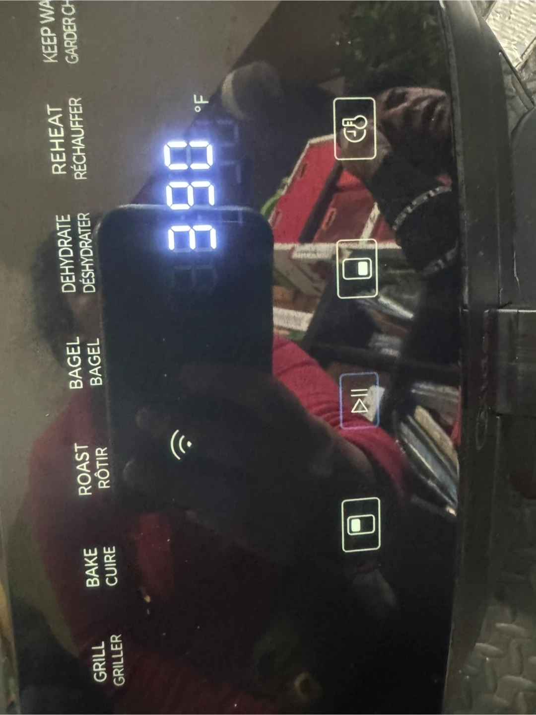 This Midea air fryer oven has an 11-litre capacity. It offers multiple cooking functions including Air Fry, Grill, Bake, Roast, Bagel, and Dehydrate. The ceramic coating is made without PFAS.