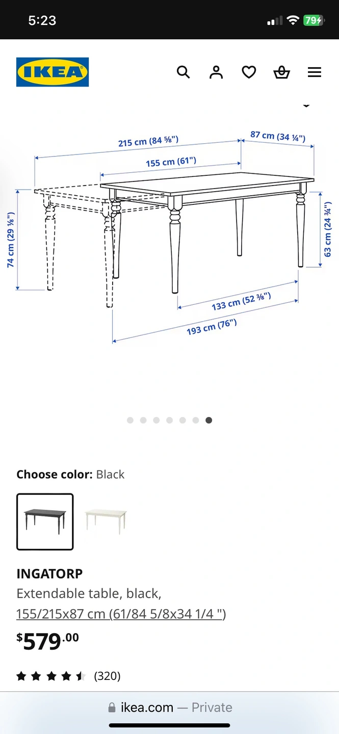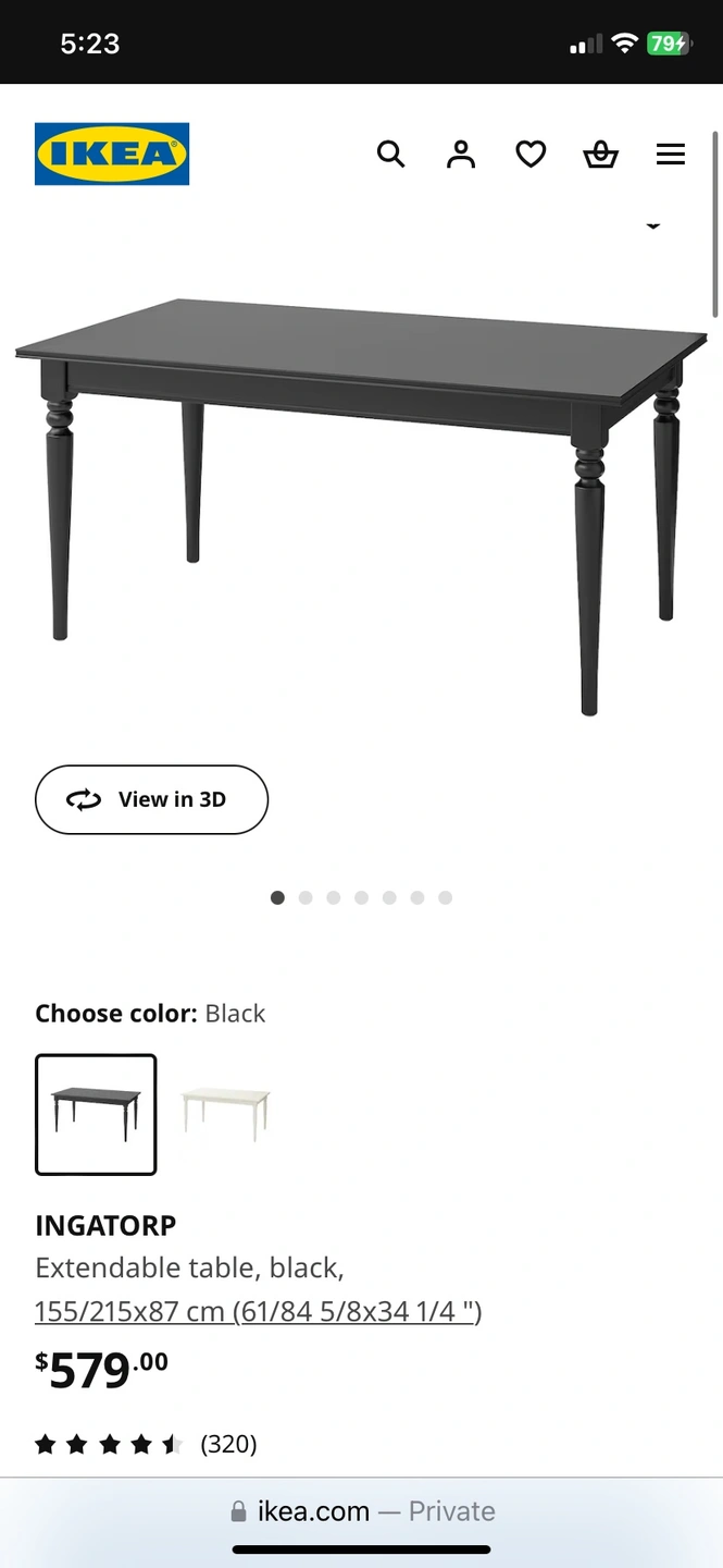 -IKEA Ingatorp extendable table (solid wood)—Retail: $648 after tax (see picture).