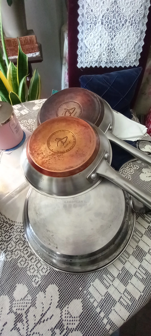 This set includes three stainless steel frying pans and an iron 10 inch w a handle. They're made with durable stainless steel construction. Suitable for everyday cooking needs!