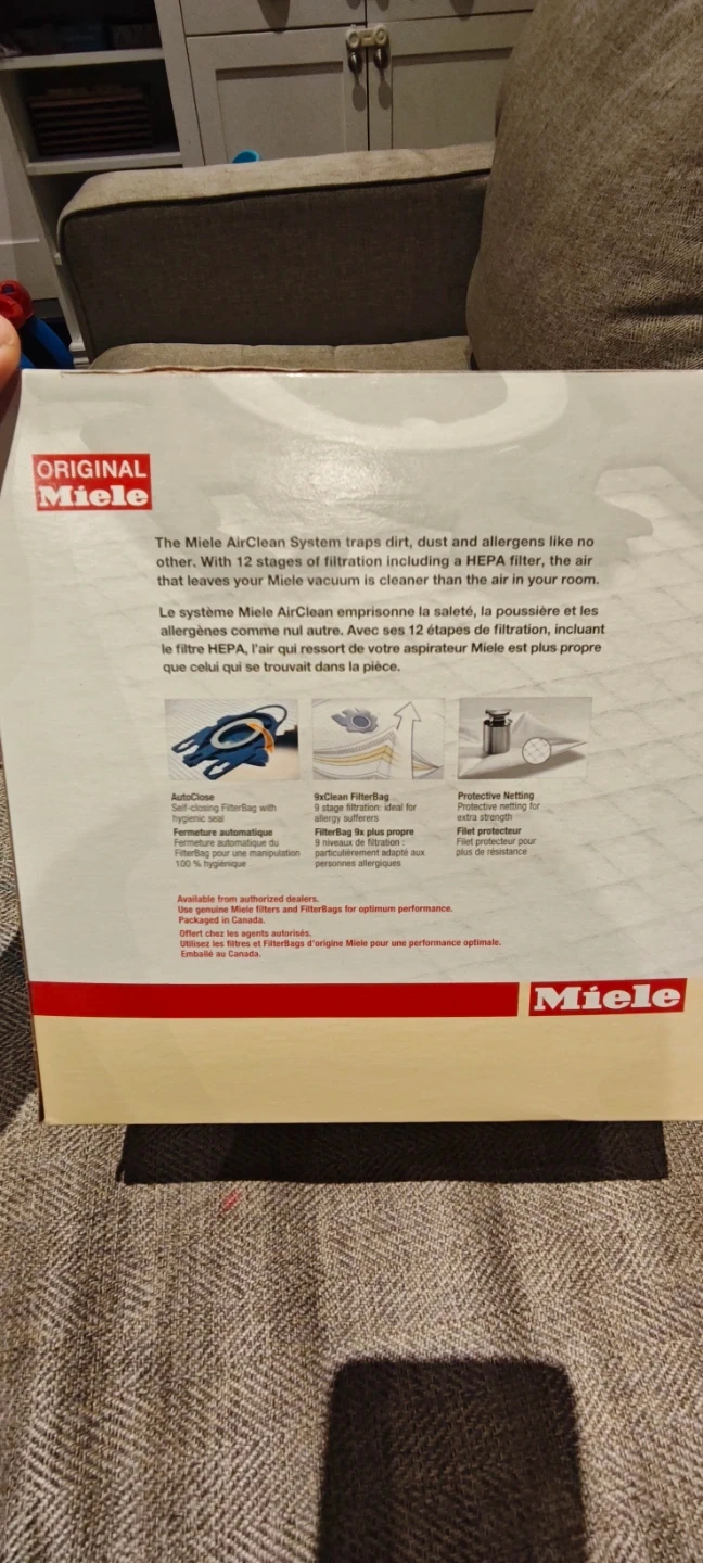 This is a Miele AirClean GN 2-year supply filter bag kit. It includes 9x FilterBags, 9x Micro-filters, and 1x protective netting. These bags trap dirt, dust, and allergens with 12 stages of filtration.
