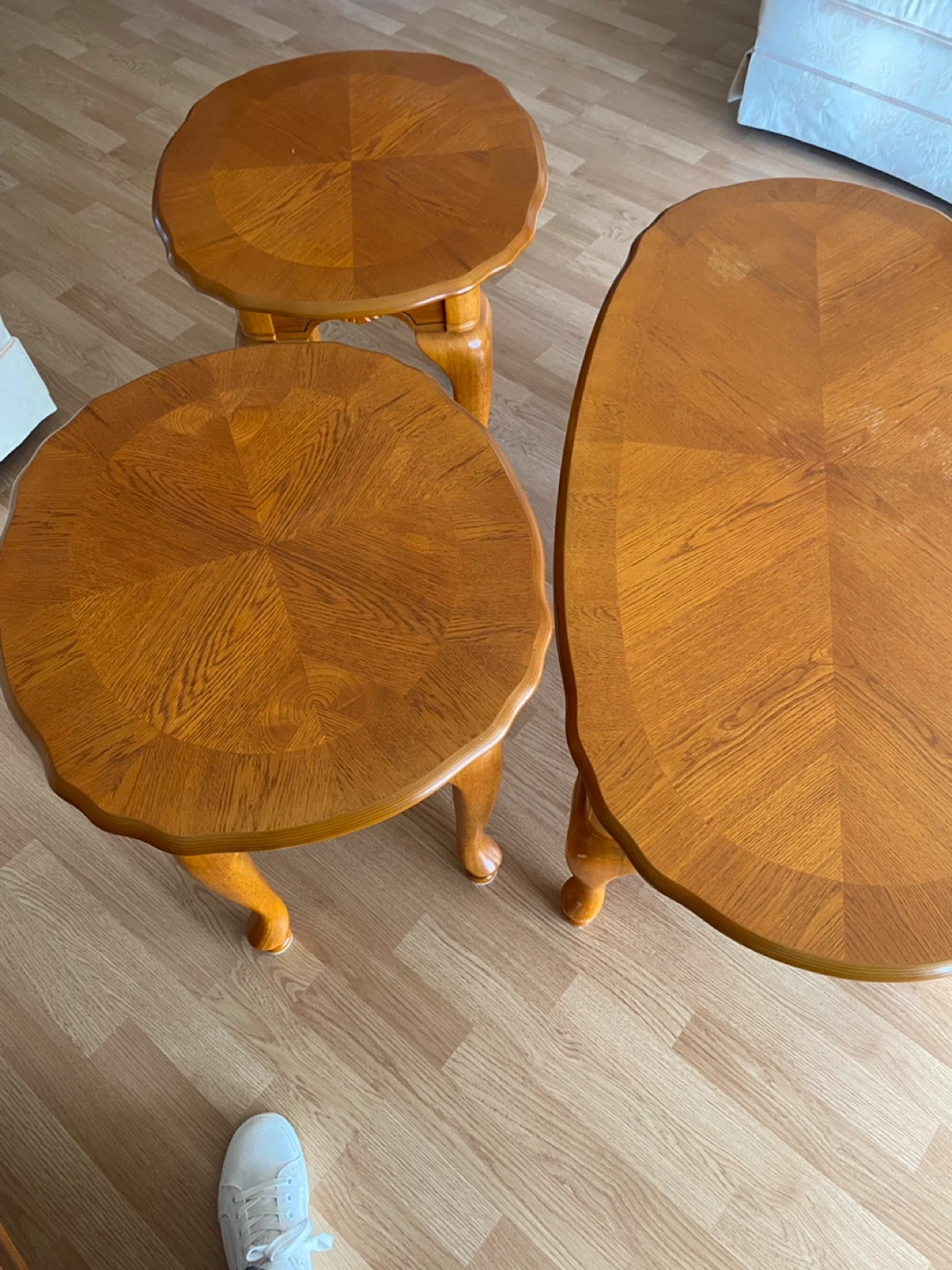 Slight watermark on coffee table as shown in picture but as solid as the day they were purchased