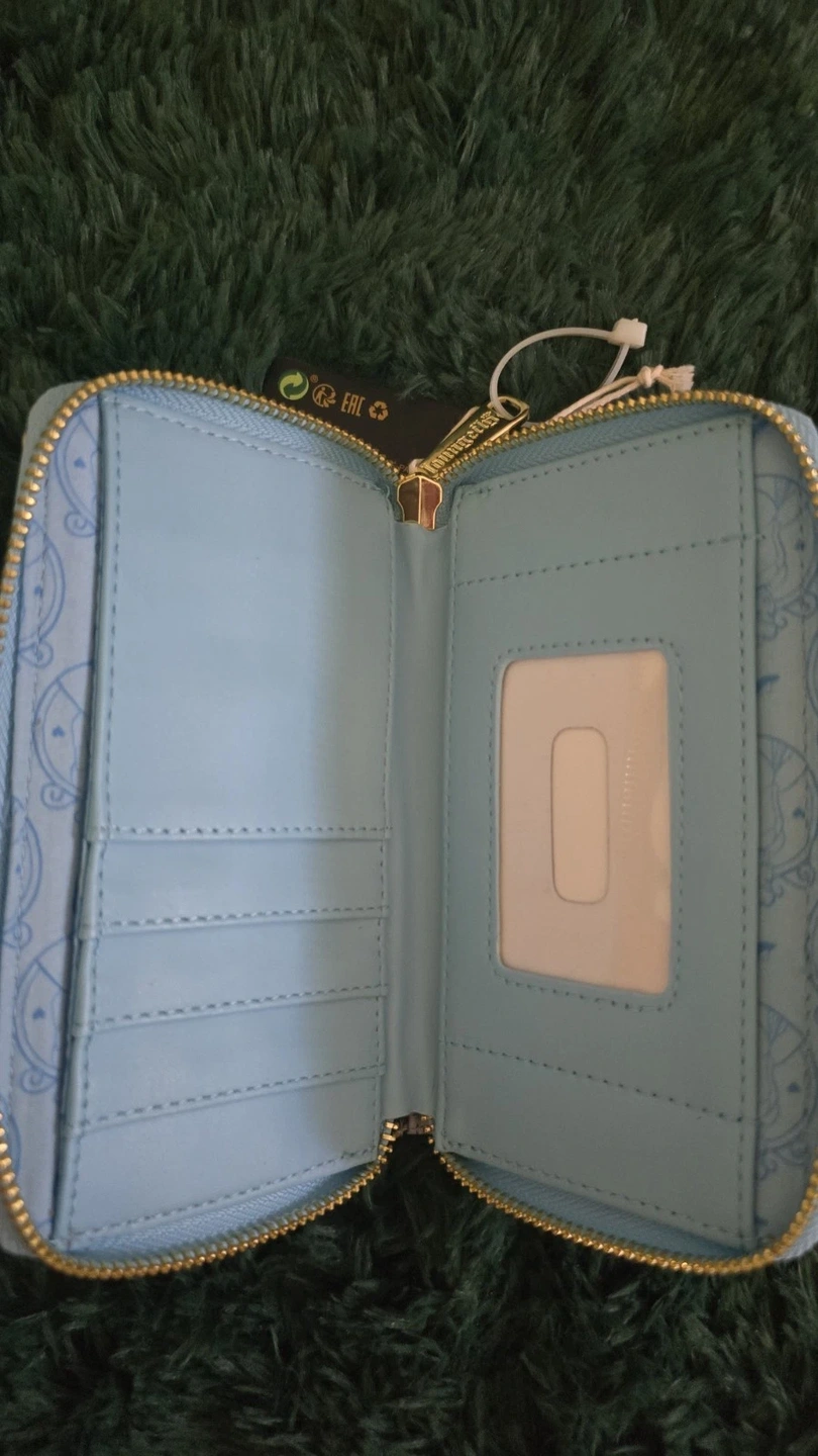 New Loungefly wallet featuring Cinderella Princess Scenes with Royal Coach and Mice. Size: 6” X 4”. Multicolor. Disney franchise. Made in China.
