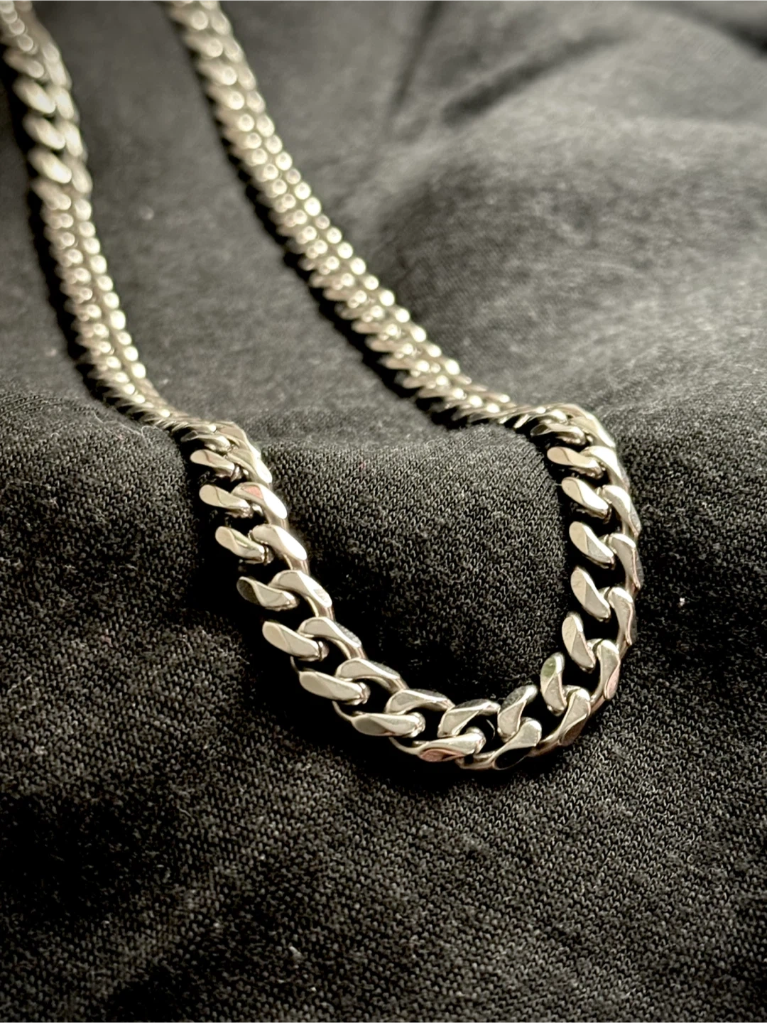 Selling a stainless steel chain necklace. It's in great condition and ready to add some shine to your style Size: 7mm Length: 50 cms