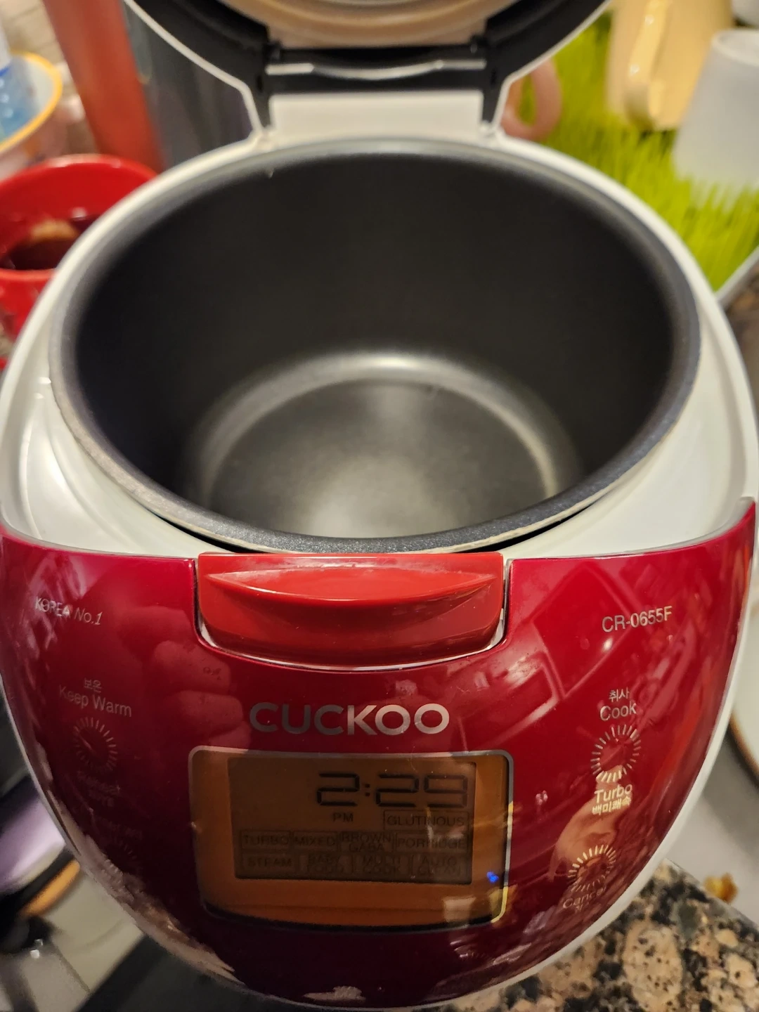 60Selling a Cuckoo CR-0655F rice cooker! It’s in great shape and ready to help you make delicious rice dishes. Features include keep warm, turbo cooking, and settings for various types of rice like glutinous and brown