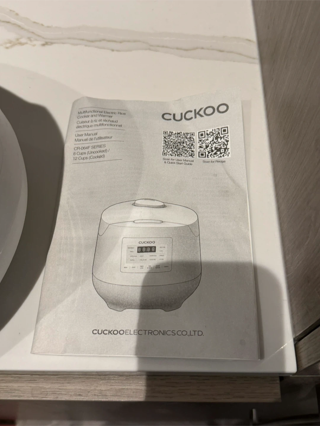 Selling a Cuckoo CR-064F 6-Cup Micom Rice Cooker! This model is a multifunctional electric rice cooker, perfect for various types of rice and even quinoa. It can cook up to 6 cups of uncooked rice or 12 cups of cooked rice. Im moving away, so I need someone to buy ASAP ! All the items shown in the picture are included.