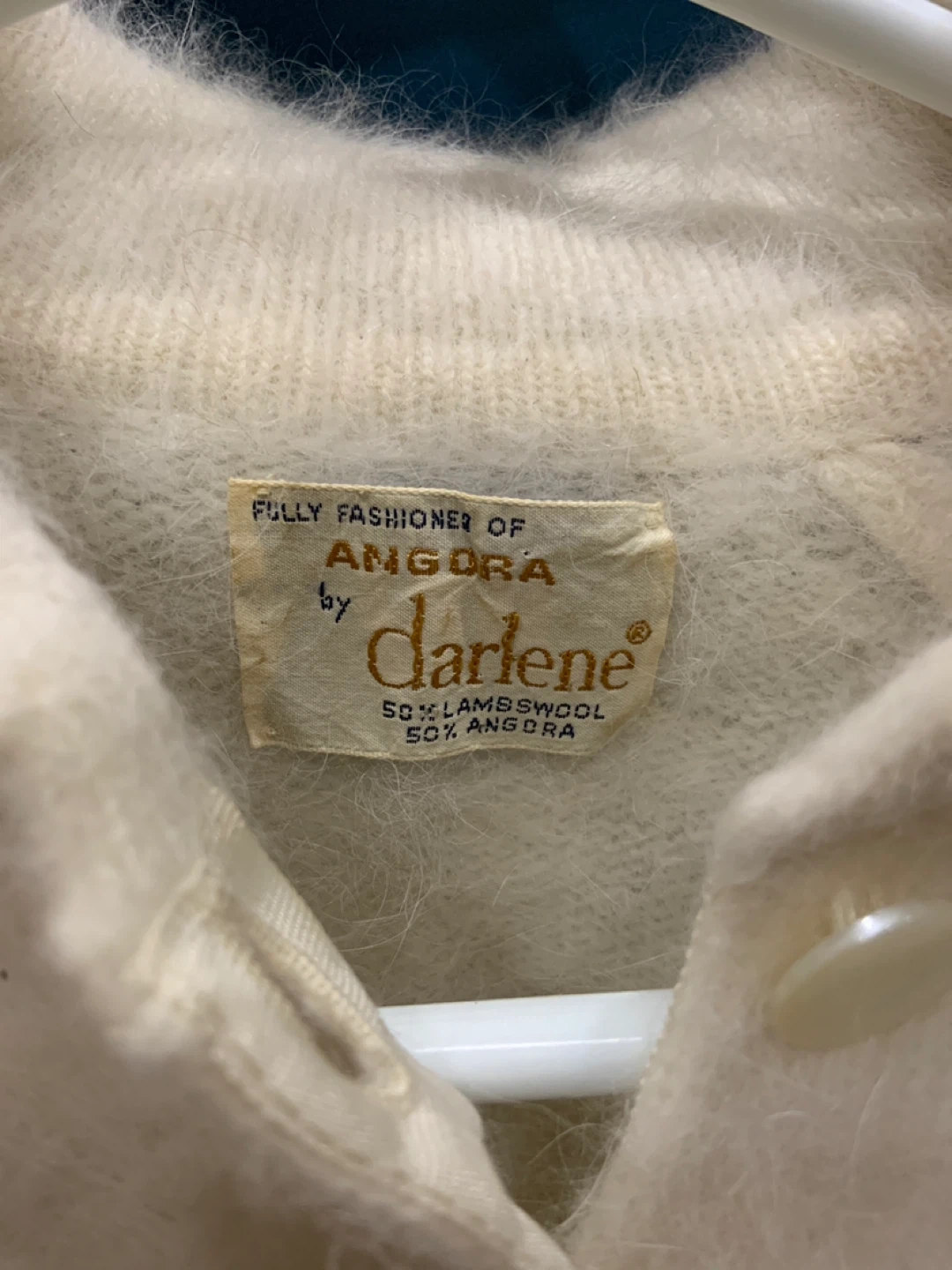 VINTAGE (50’s or 60’s) angora sweater by Darlene. It's made from 50% lambswool and 50% Angora.