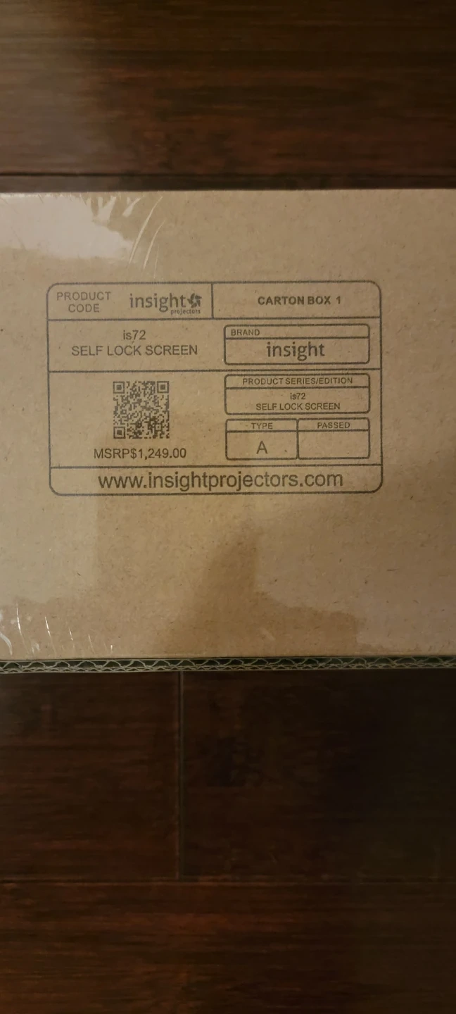 Insight 72" Digital Projector Self Locking Screen - New In Box