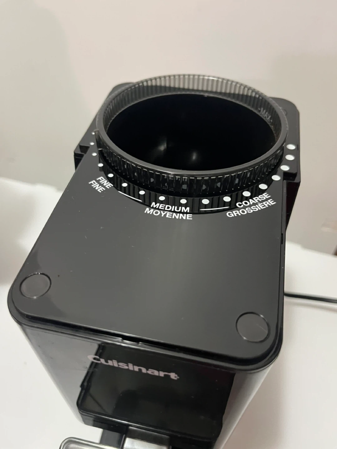 60Selling a Cuisinart burr mill coffee grinder in black. It has settings from fine to coarse, so you can get the perfect grind for your brewing method. Great for coffee lovers who want fresh grounds every time!
