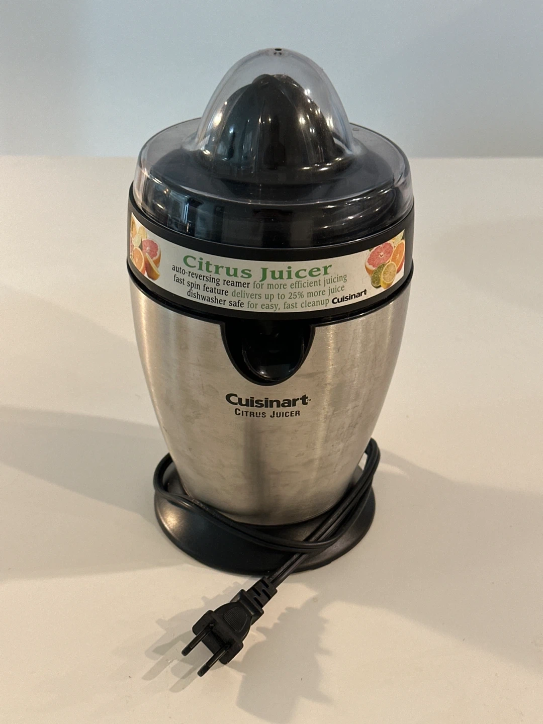 21Selling a never used Cuisinart Citrus Juicer! It features an auto-reversing reamer for more efficient juicing, and a fast spin feature that delivers up to 25% more juice. Plus, it's dishwasher safe for easy cleanup.