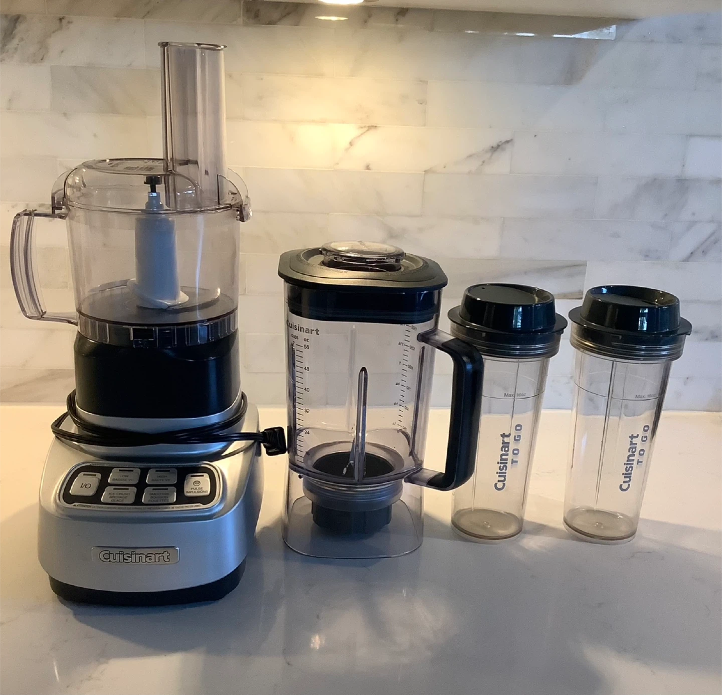 21Selling a Cuisinart food processor and blender combo. It comes with all the attachments you see in the photos, including the food processor bowl, blender jar, and two Cuisinart To Go cups. Great for all your food prep needs!