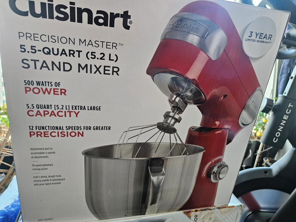 10500-watt motor. 5.5-quart (5.2 L) capacity. 12 speeds. Includes whisk, dough hook, mixing paddle, and splashguard with pour spout. 3-year limited warranty. Never used,stil in its original box. π¦ This was a gift from work, but unfortunately, I don't have the counter space for it. These mixers sell for around $450 online! If the add is up it's still available.