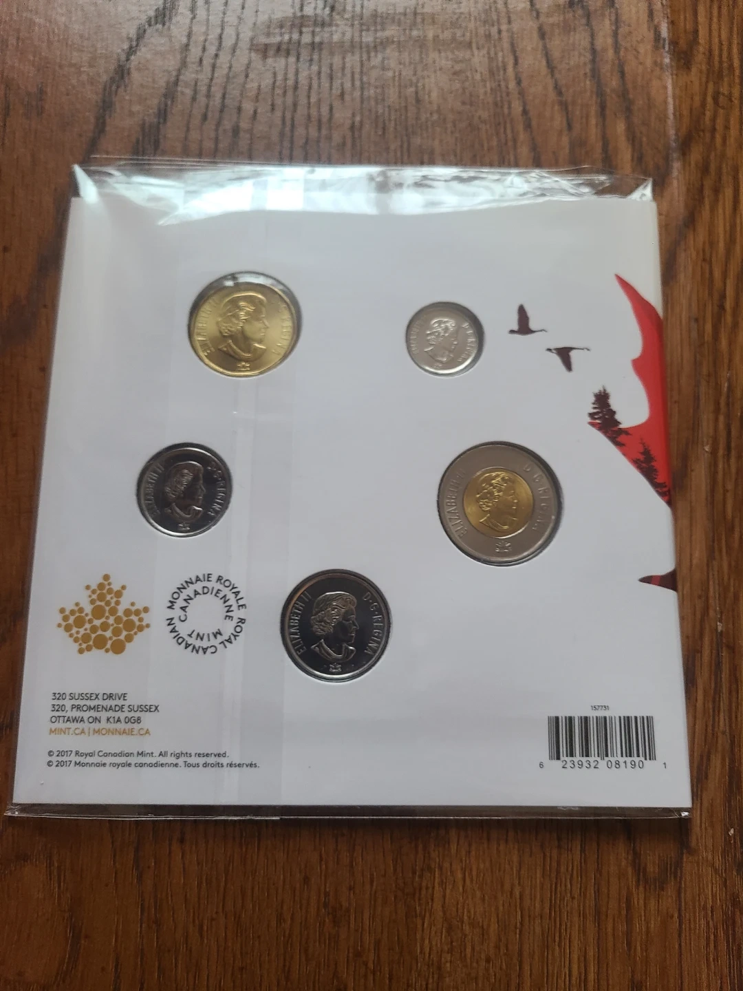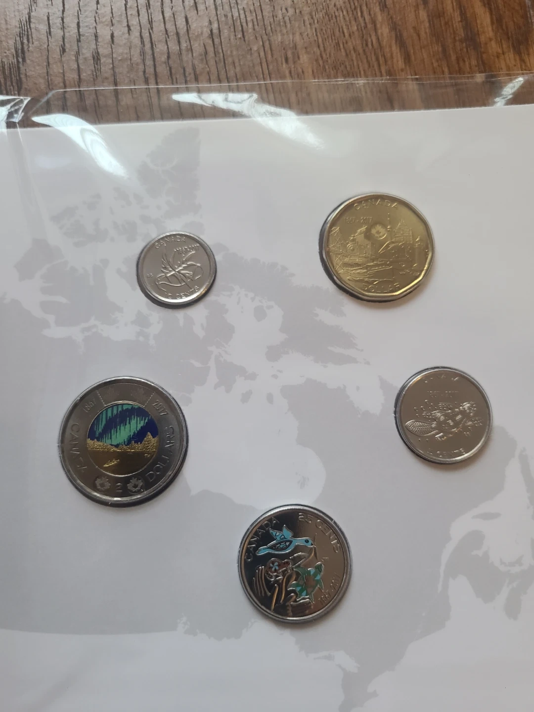 Collection of Canadian coins from 2017 celebrating Canada 150, My Canada, My Inspiration. Includes all Canadian coins denominations with unique designs. Brand new with Royal Canadian Mint packaging.