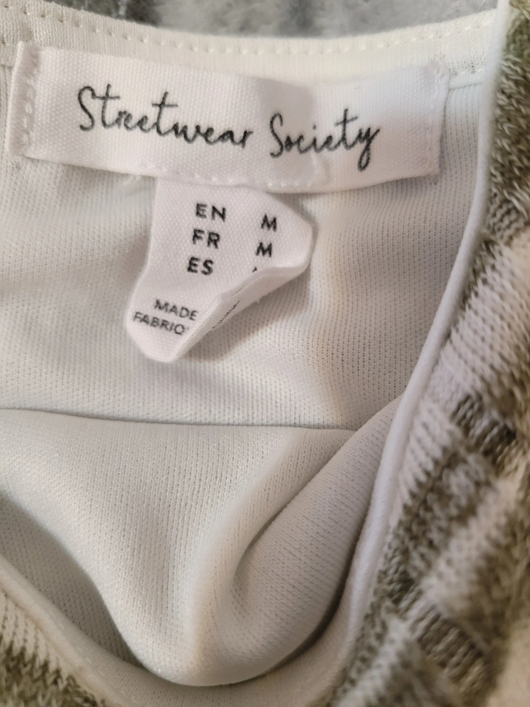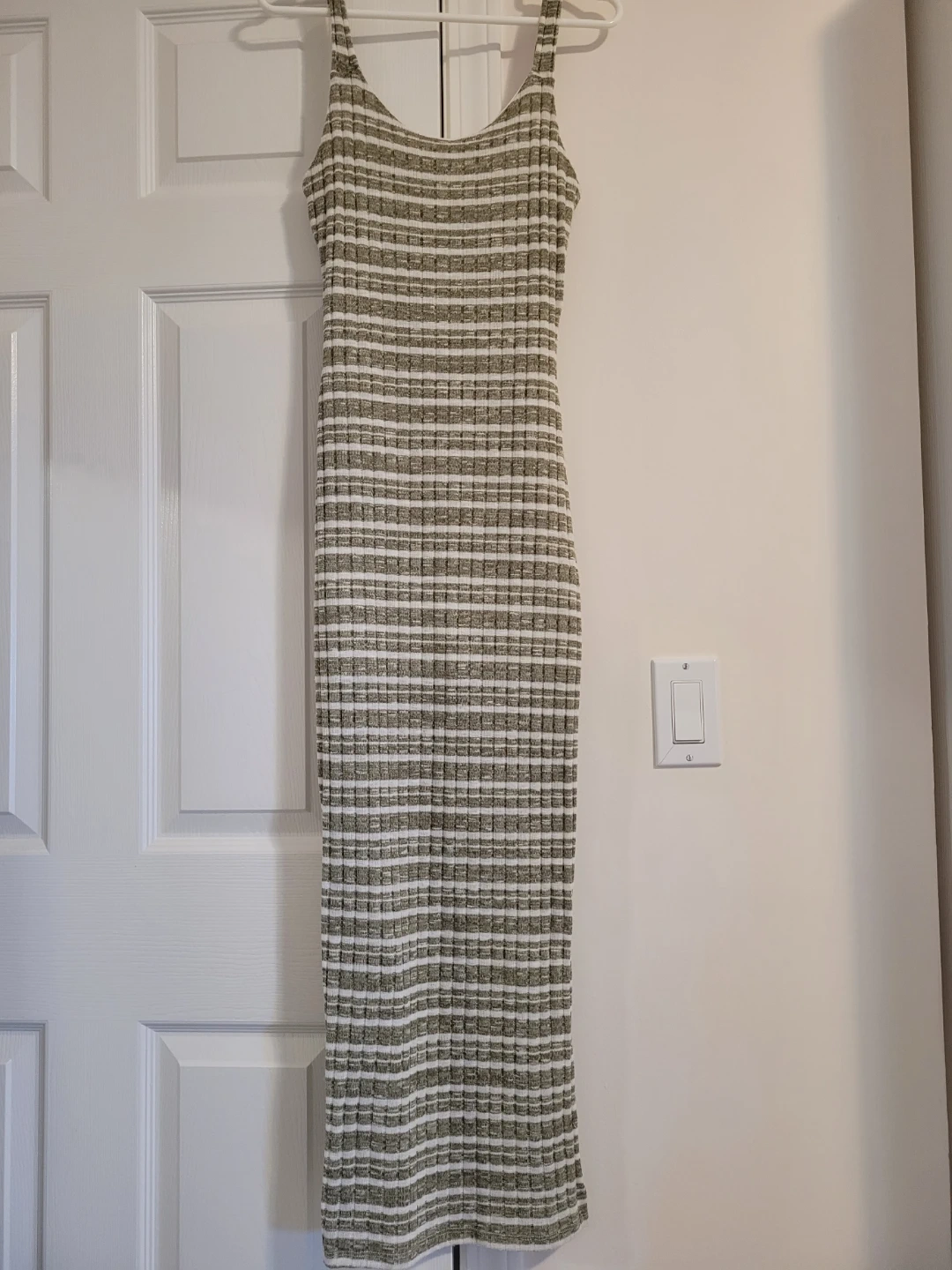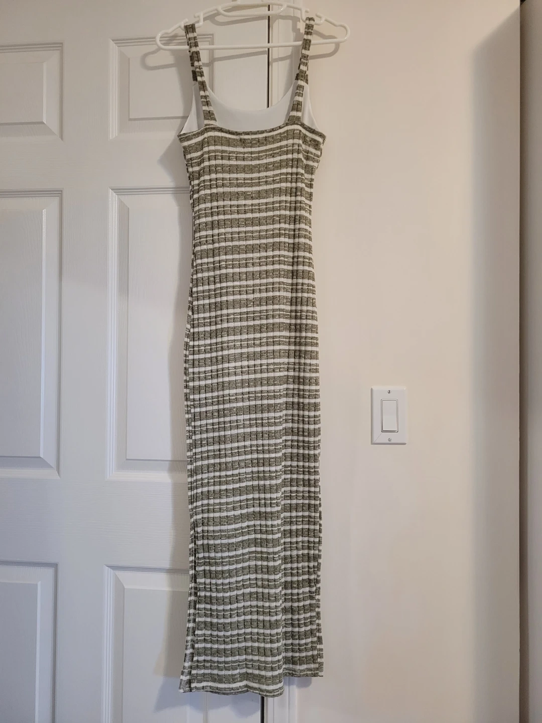 Here's a cute striped dress from Streetwear Society! It's a size medium and has a lovely ribbed texture. Its Soft and stretchy
