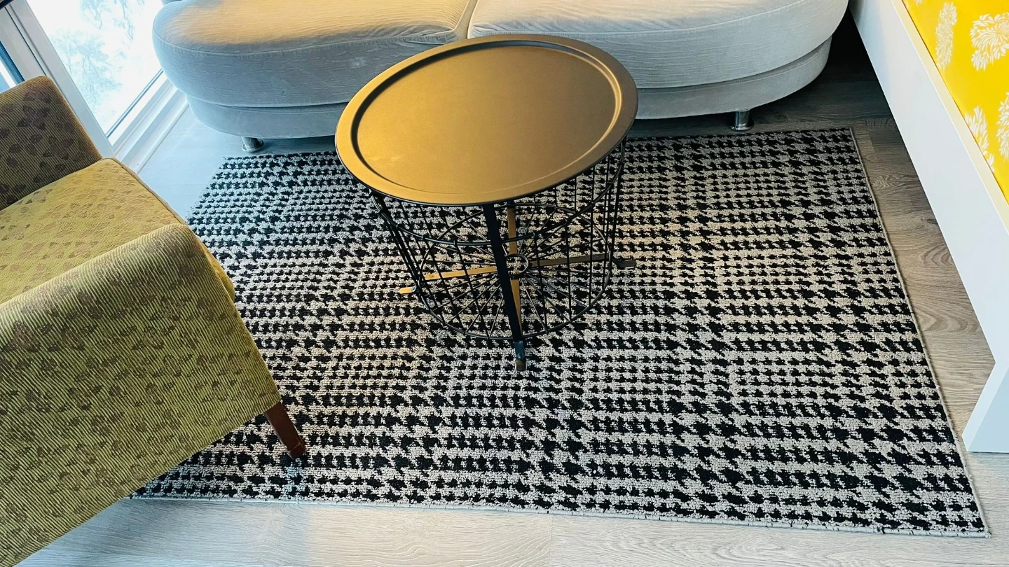It comes along with a black and grey patterned 70x45 rug to give perfect look to your living room or study.