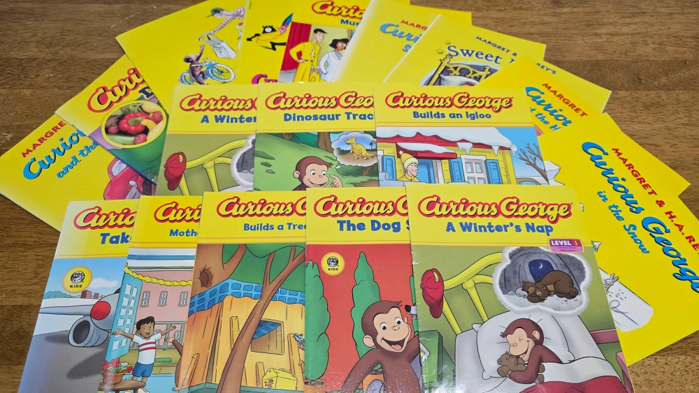21Selling a 16 set of Curious George books for kids! These are great for young readers and feature everyone's favourite monkey, George. Titles include: - Sweet Dreams, Curious George - Curious George Rides a bike - Curious George Museum mystery - Curious George Builds an Igloo - Curious George by H. A. Rey - Curious George Dinosaur Tracks - Curious George Builds a Tree house - Curious George The Dog show - Curious George A Winter's Nap - Curious George in the Snow - Curious George mother's day surprise - Curious George takes a trip - Curious George and the hot air balloon - Curious George says thank you - Curious George Discovers plants - Curious George and the firefighters