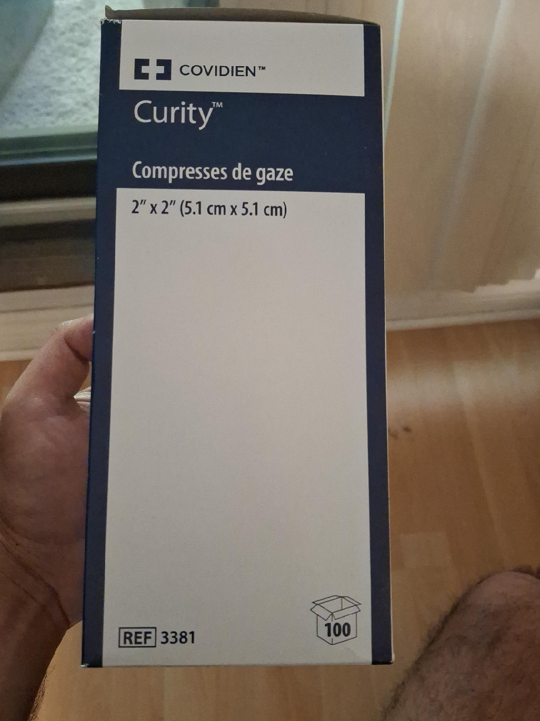 Selling a box of Curity gauze compresses. These are 2" x 2" in size and come with 100 compresses in the box. Perfect for first aid needs!
