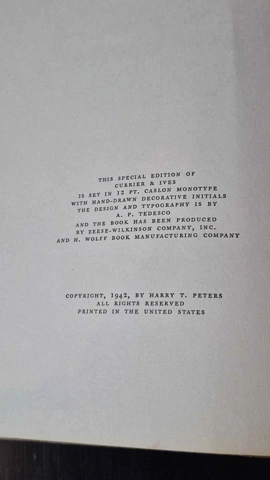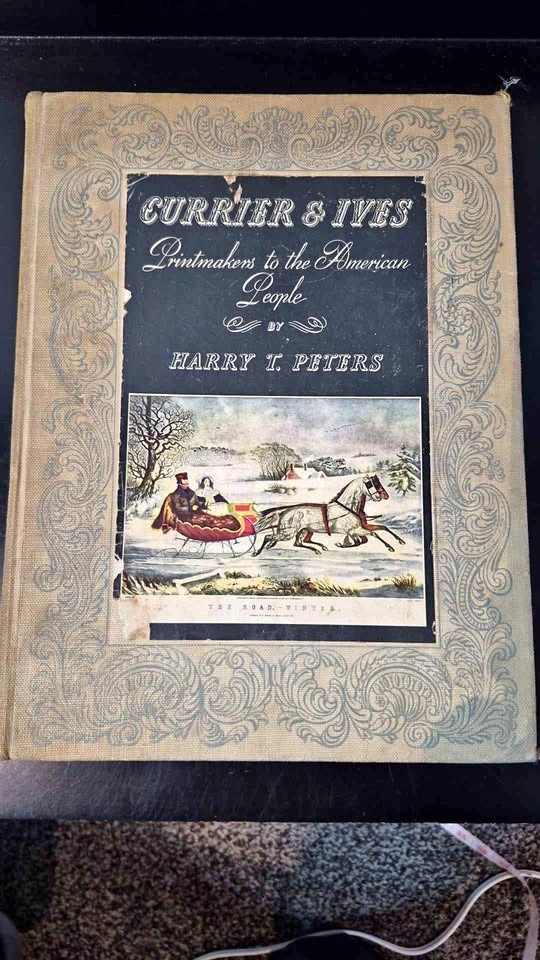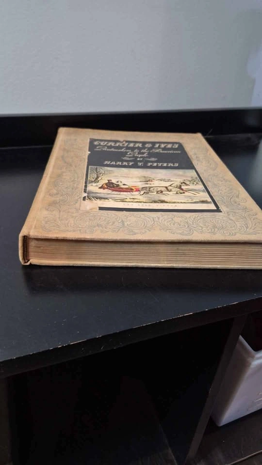 15Originally published in 1942 The Currier and Ives printmakers to the American people by Harry T Peters is a book of graphic plates highly collectible. This book's dimensions are 31.5 CM by 24 cm and 3 and 1/2 cm tall. It is in use condition but it is still an excellent shape regardless of its age. I can meet in Airdrie, Crossiron Mills or north Calgary for pick up.