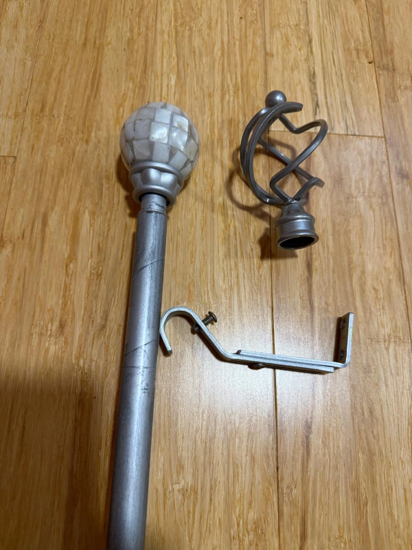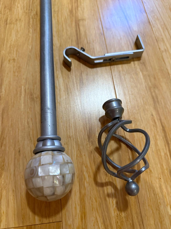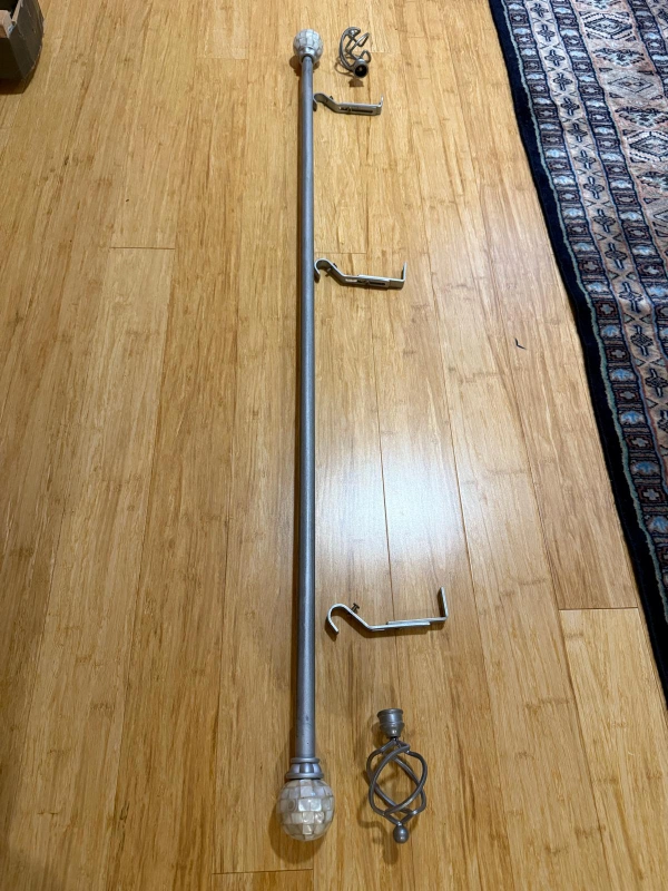 Selling a Curtain Rod with Extra decorative End Capa. Metal, extends to 6’6” (six and a half feet) -