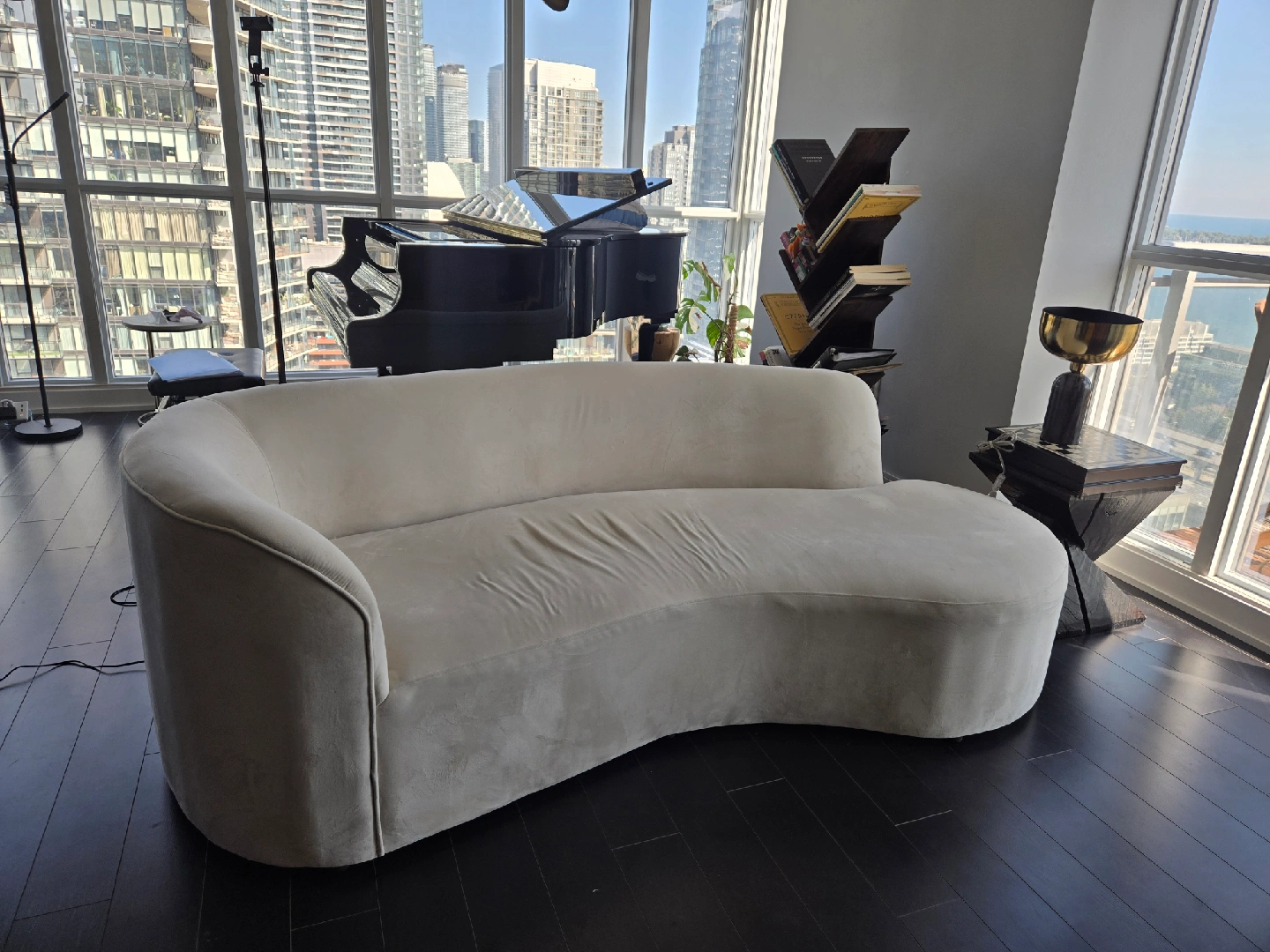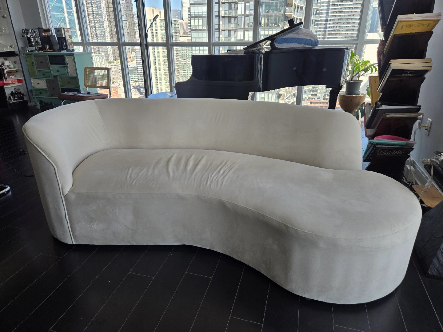 128Selling a curved white sofa. It's in good condition and would be a great addition to any living space! It's a very stylish piece of furniture that will add a touch of elegance to your home. 84*38w*28h The sofa is quite firm/hard. Pick up at 15 Iceboat. 6478320532.