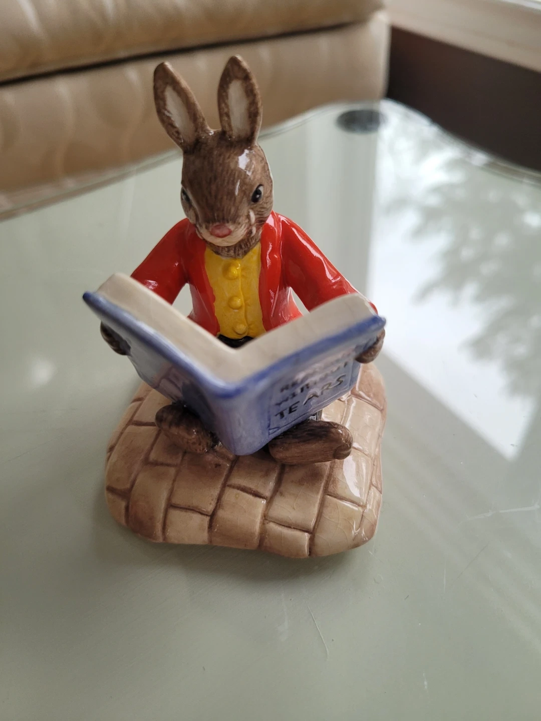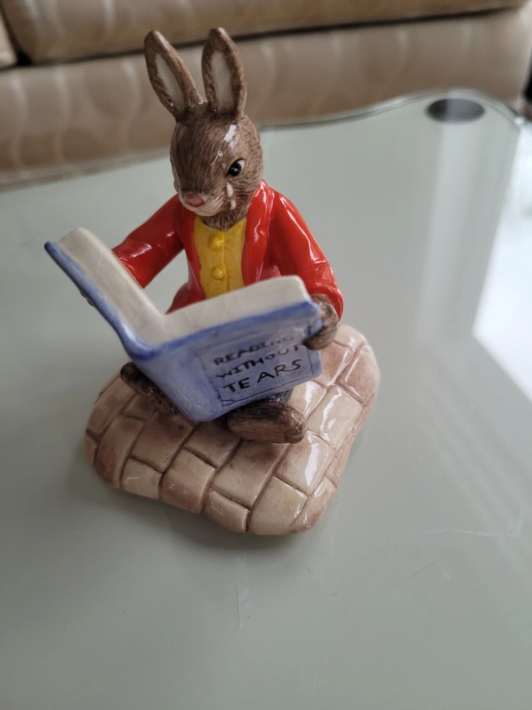 Royal Doulton charming ceramic figurine of "William Reads Without Tears". The detail on this cute piece is perfect for collectors or fans of Beatrix Potter stories.This little bunny figurine is approx 8.5cm high.