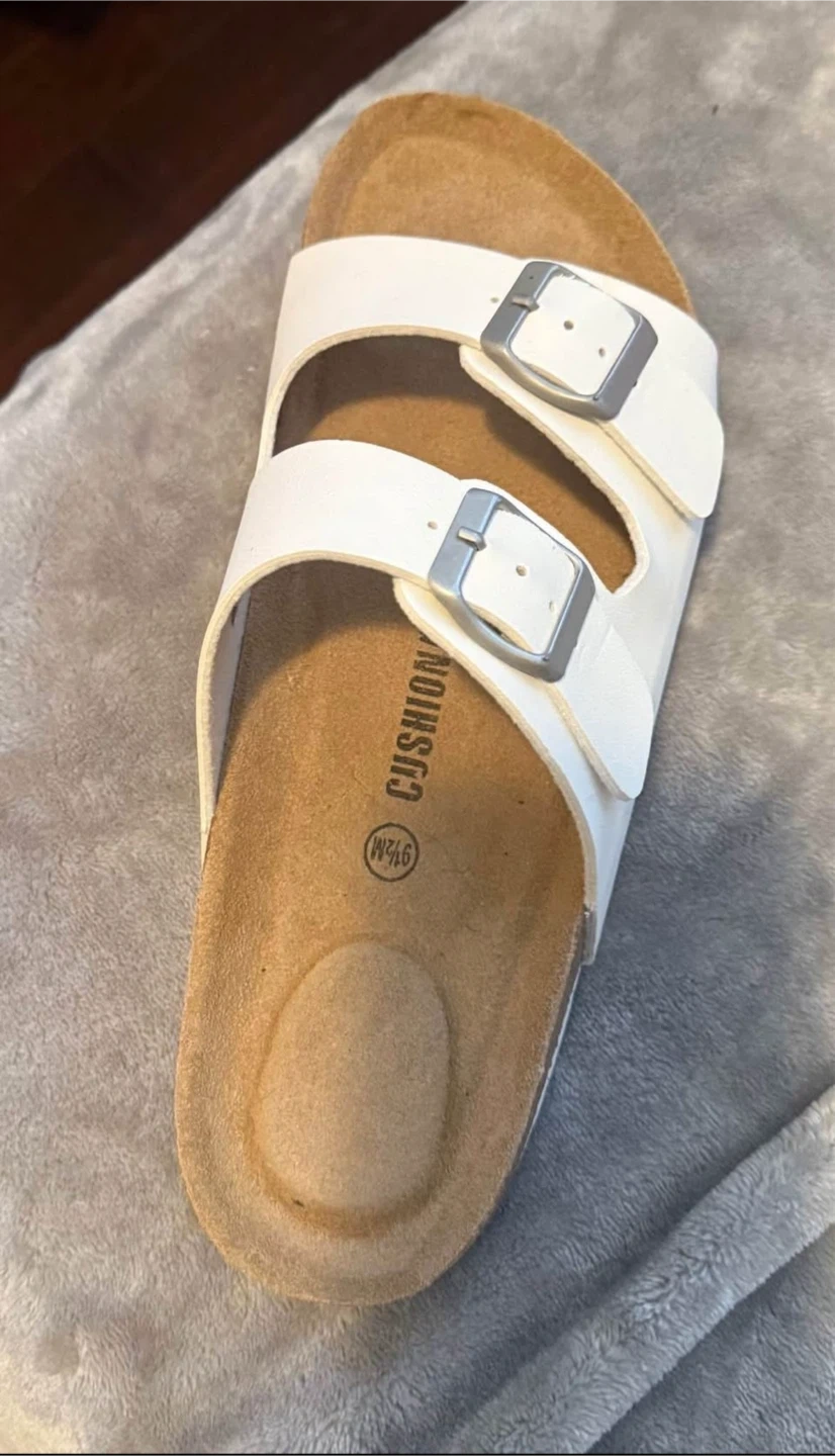 100% Genuine Suede insoles - forms a perfect contour of the foot after being worn in. Premium faux leather - With soft lining and adjustable straps. Premium traction design EVA outsole - Long lasting Cork footbed - very flexible Platform measures approximately 1.25 inches Brand new never worn. Size 9.5 women’s. $30 OBO