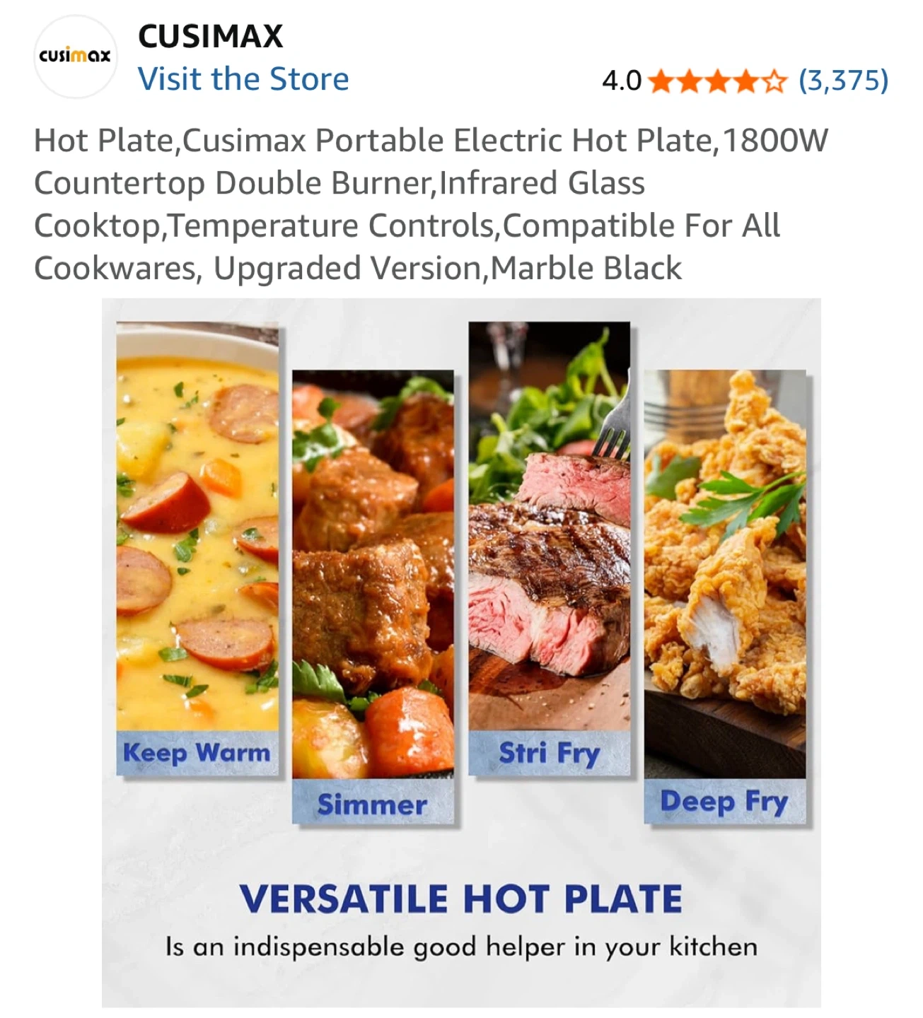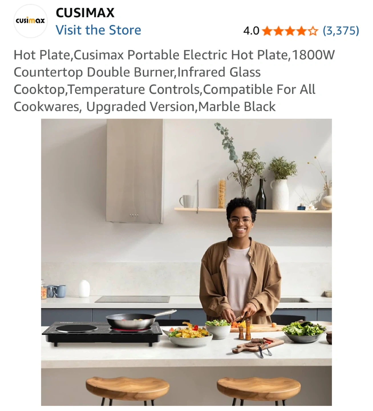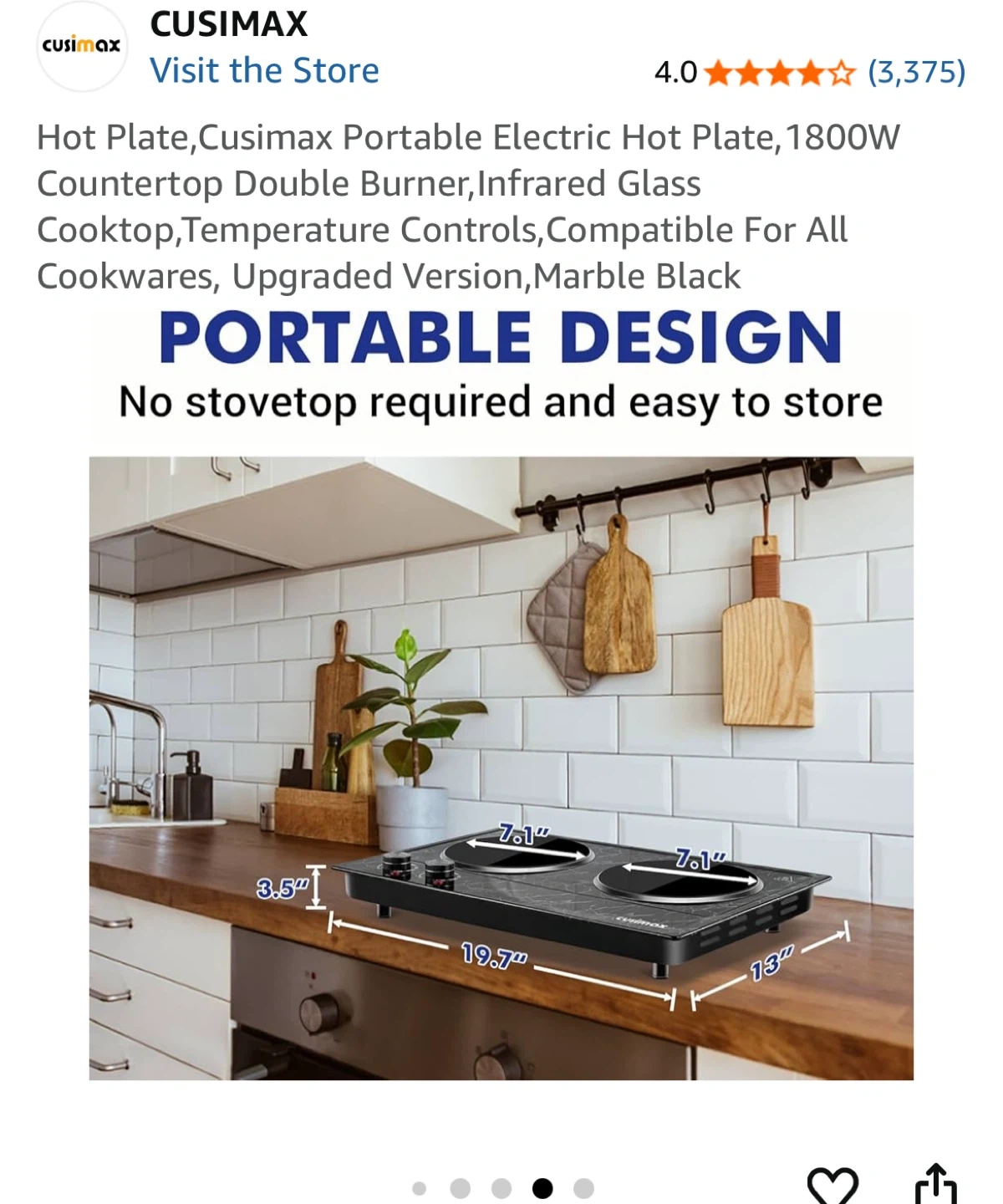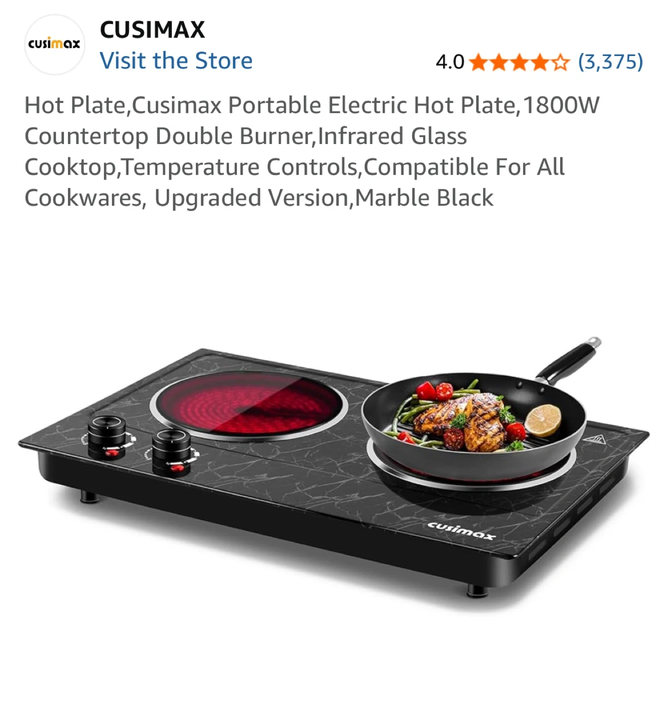 140Check out this Cusimax portable electric hot plate! It's got a marble black finish and is perfect for all types of cookware, from woks to frying pans. It heats up quickly and evenly with 1800W power. The double burner has infrared glass cooktops and temperature controls for all your cooking needs. A versatile helper in the kitchen!