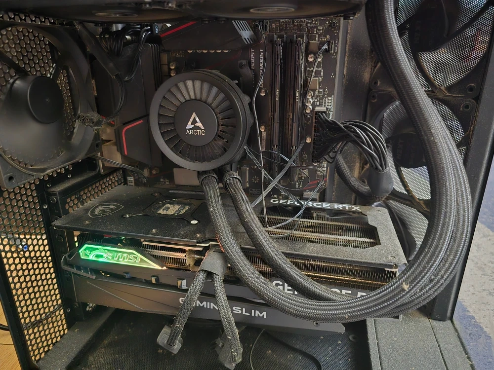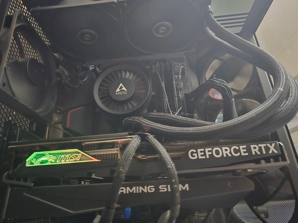 60Selling a custom-built gaming PC. It features an MSI GeForce RTX graphics card and an Arctic CPU cooler. The power supply is an RM850x. Great for gaming! Mobo: msi x570 gaming plus Cpu: amd ryzen 7 5700x3d Cpu cooler: arctic pro 240 aio Ram: 32gb Gpu: msi 4070 ti super 16gb gaming slim Psu: 850w Storage: 1tb nvme m.2 Windows 11 Nzxt h6 dual chamber case Less than a year old Handles 1440p 144hz maxed out $1500