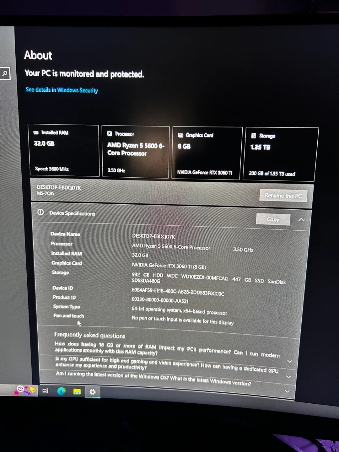 Selling a custom-built gaming PC in great condition! It features: - AMD Ryzen 5 5600G 6-Core Processor - NVIDIA GeForce RTX 3060 Ti (8GB) - 32 GB RAM - 1.95 TB Storage (957 GB HDD, 447 GB SSD SanDisk) This PC is ready to handle your favourite games and applications smoothly!
