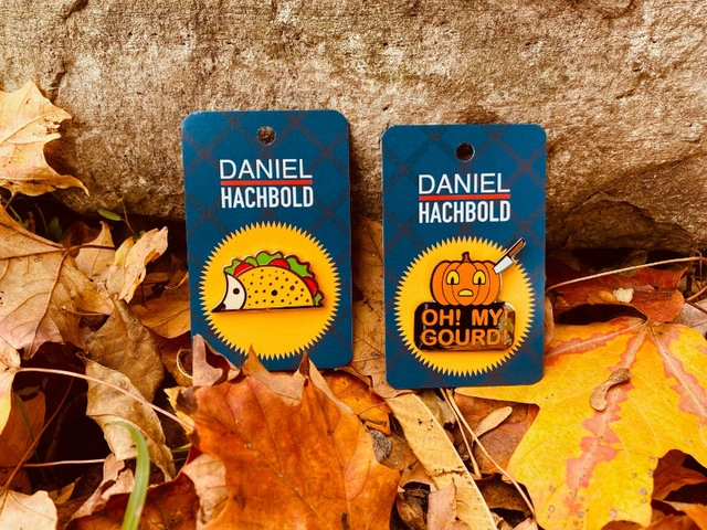 Custom Hard Enamel Pins. Hedgehog Taco & Halloween Oh My Gourd Hedgehog Taco Hard Enamel Pin (Gold Plated) Size: 1.5" x 0.8" (38mm x 20mm) Halloween Oh My Gourd Hard Enamel Pin (Black Nickel Plated) Size: 1.5" x 1.4" (38mm x 36mm) I designed both of these from my own original artwork. Manufactured in China. Please do not copy without permission. Pickup is on Strange Street in Kitchener (near Grand River Hospital). I'm free weekdays and weekend afternoons and evenings most nights. $12/each. Art prices are firm and are non-negotiable, if prices are out of your budget/price range that is understandable, just please don't be rude about it. I don't drive; Pickup only. Cash or e-Transfer only. No trades.