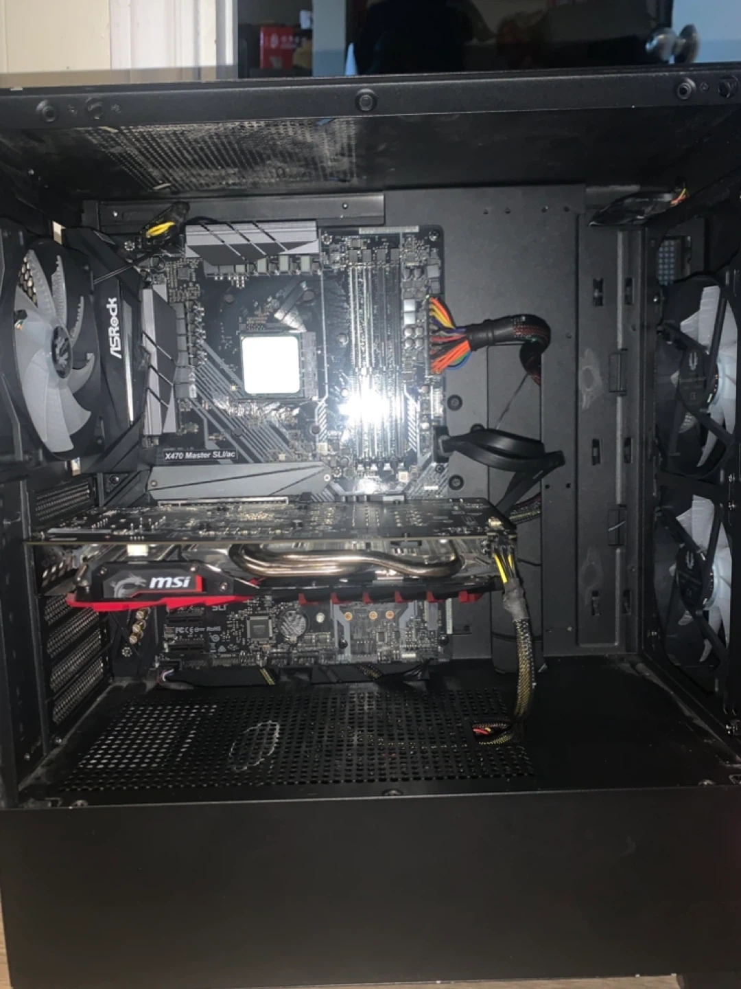 Selling a broken gaming pc featuring: - Motherboard: ASRock X470 Master SLI/ac - CPU: AMD Ryzen 5 5500 - GPU: MSI rx470 8 gig - Power Supply: 400W Not sure why it doesn’t work but its 160obo