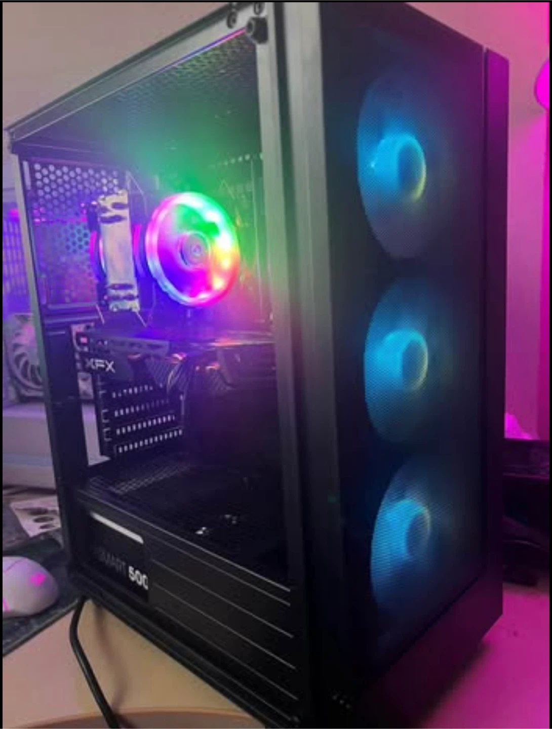 Selling a custom-built gaming PC. It's in great condition and ready for a new home! It features a sleek black case with RGB lighting for a cool aesthetic. Perfect for gaming or other demanding tasks! Feel free to reach out if you have any questions
