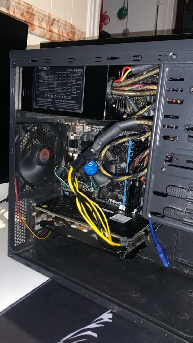 15Selling a old custom-built PC! It features a Cougar case and an ASRock motherboard. The processor is an Intel Core i3-4150 CPU @ 3.50GHz. It has 4096MB of memory. The graphics card is an R9 380. 120obo m(also can Be used as parts)