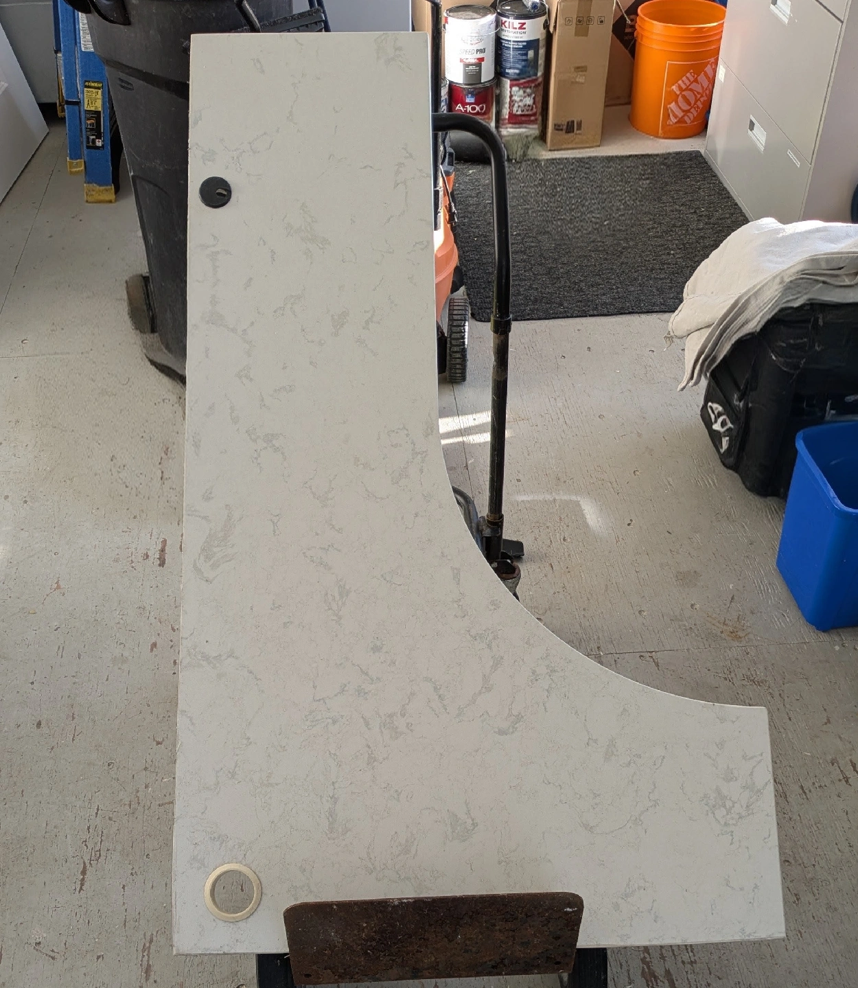 Selling a custom-made quartz countertop. It's in great condition and would be perfect for a kitchen or bathroom renovation. The quartz material is durable and easy to clean.