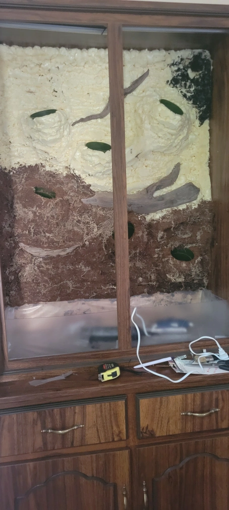 20Selling a custom-built reptile enclosure. It features a unique background design with integrated hiding spots and a water-resistant base. Perfect for creating a natural and comfortable habitat for your reptiles