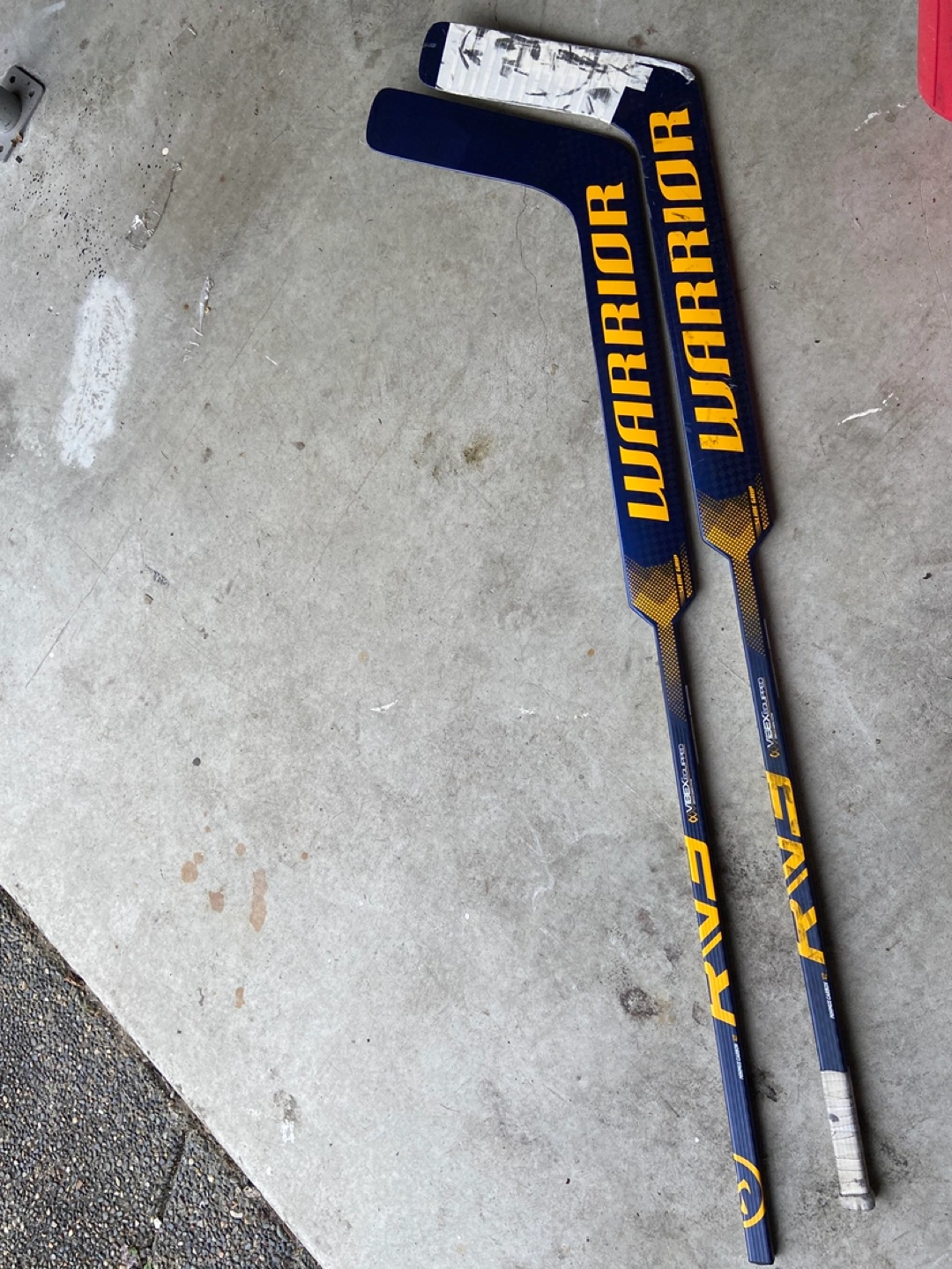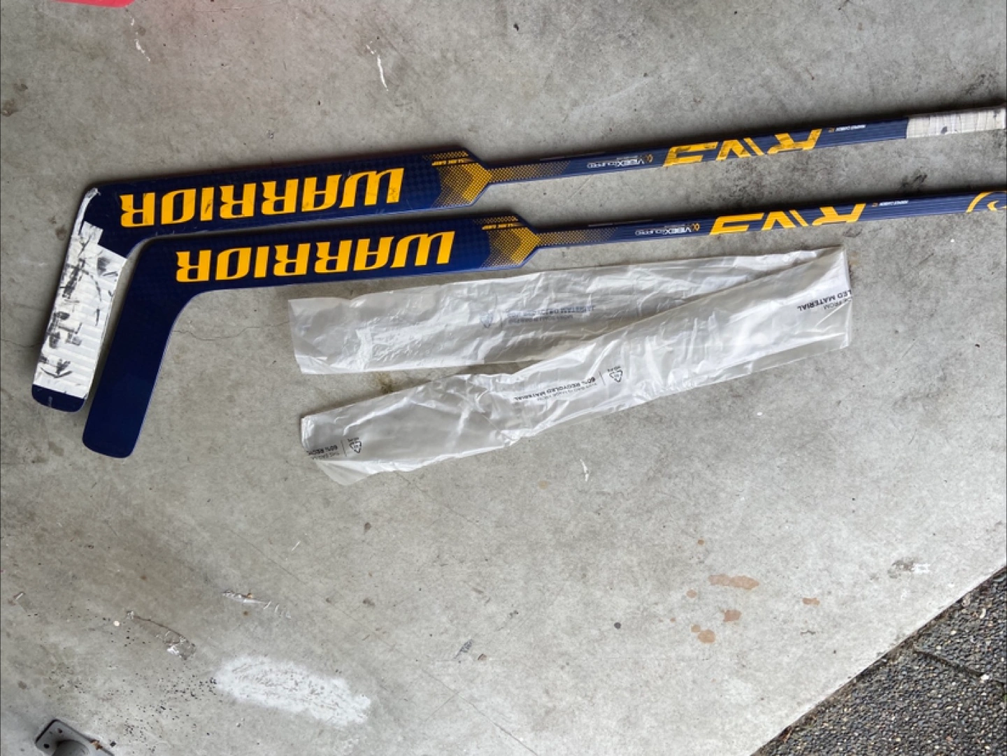 Selling two Warrior RVS hockey sticks. They are 25" W32 (Mid). One is used for a couple of game other still has the plastic that came with it never used!