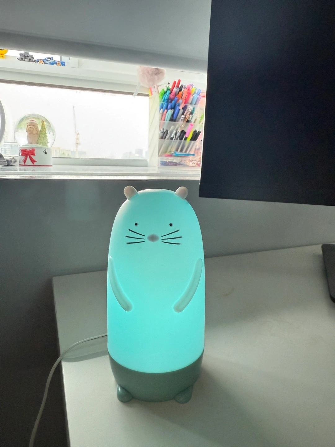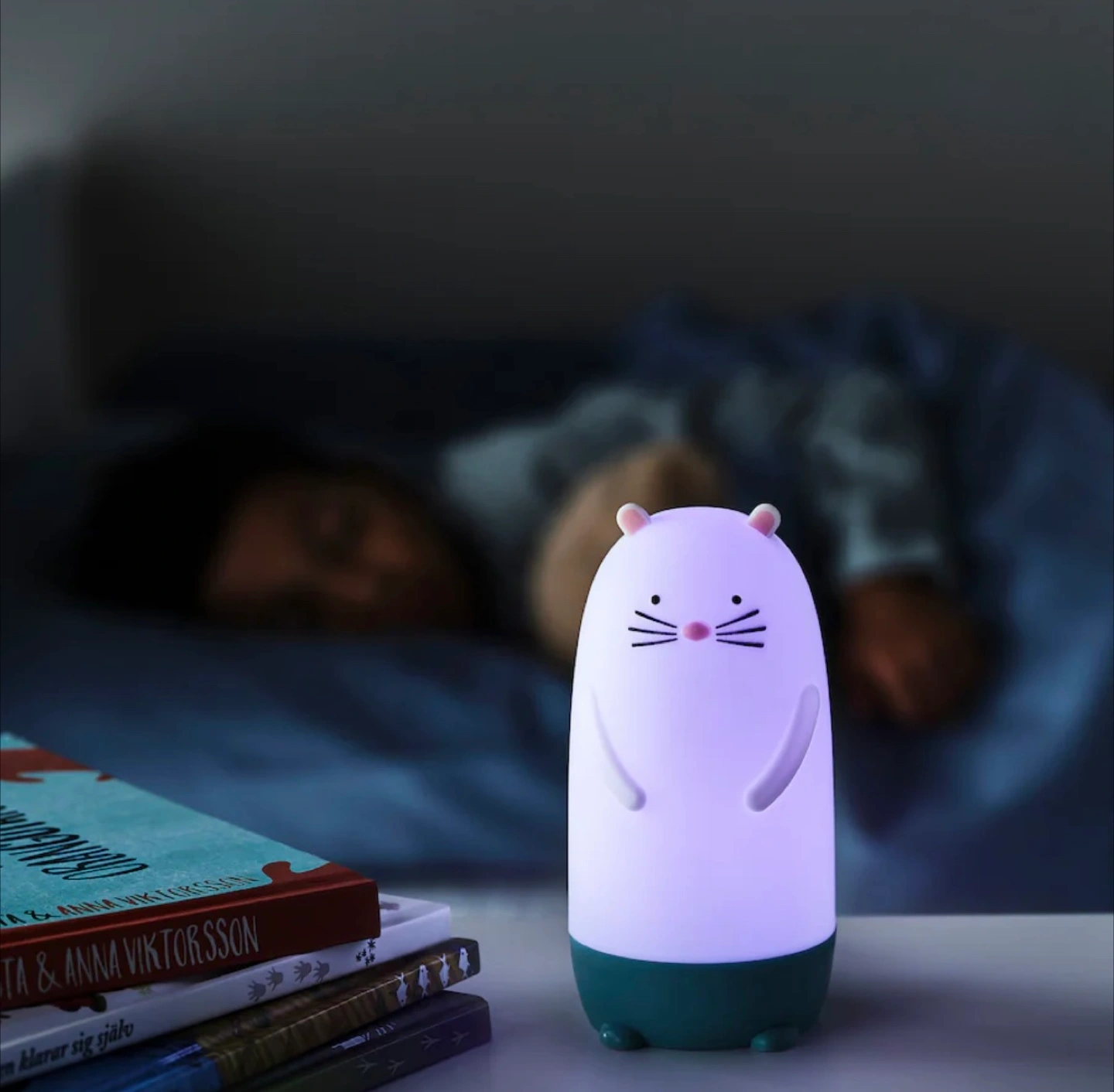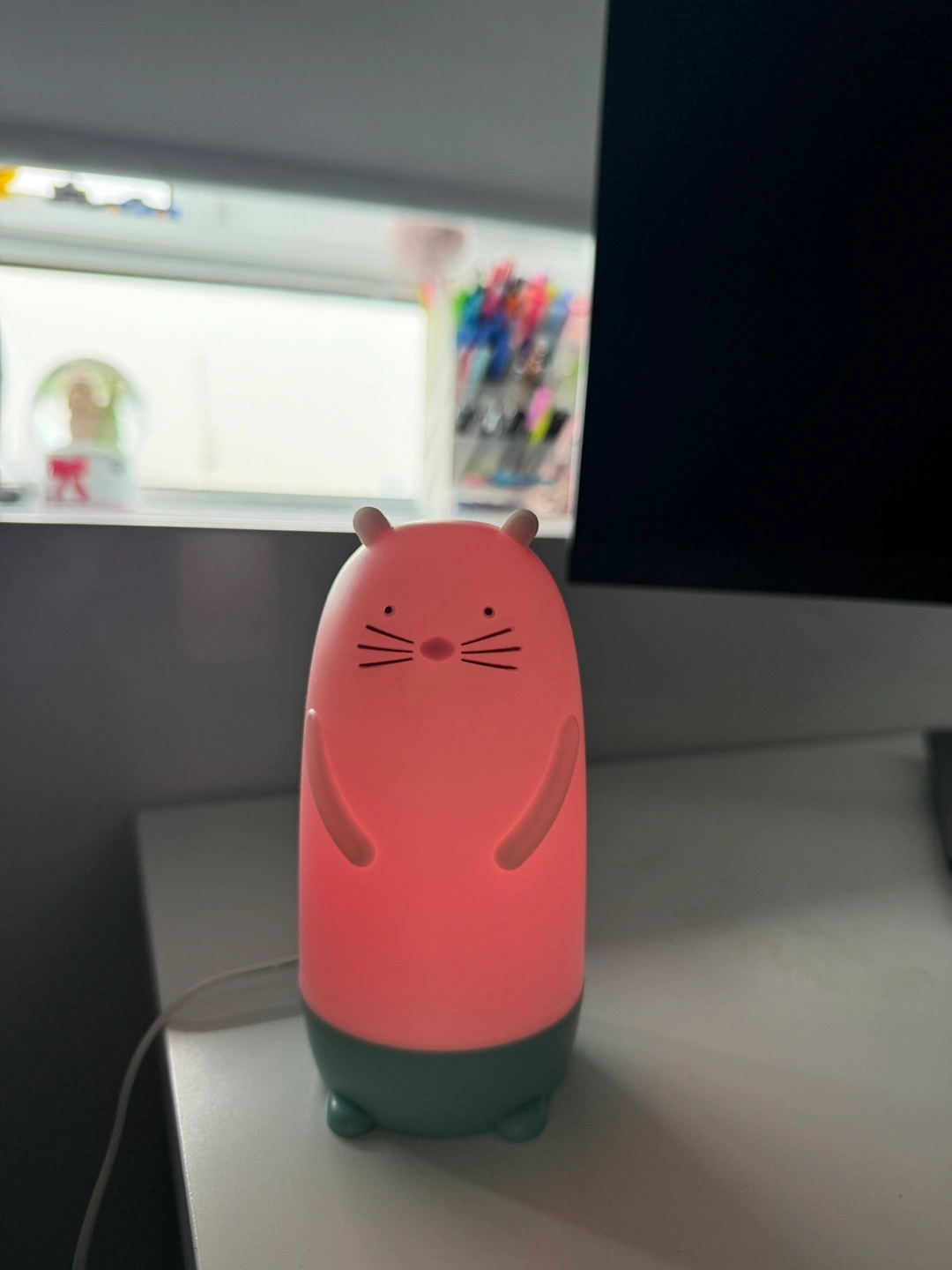 Barely used. The original price is 18 at ikea. A night light shaped like a cute animal. It features a simple design and emits a soft, calming glow with different color settings. It will make bedtime a cozy and comforting experience.