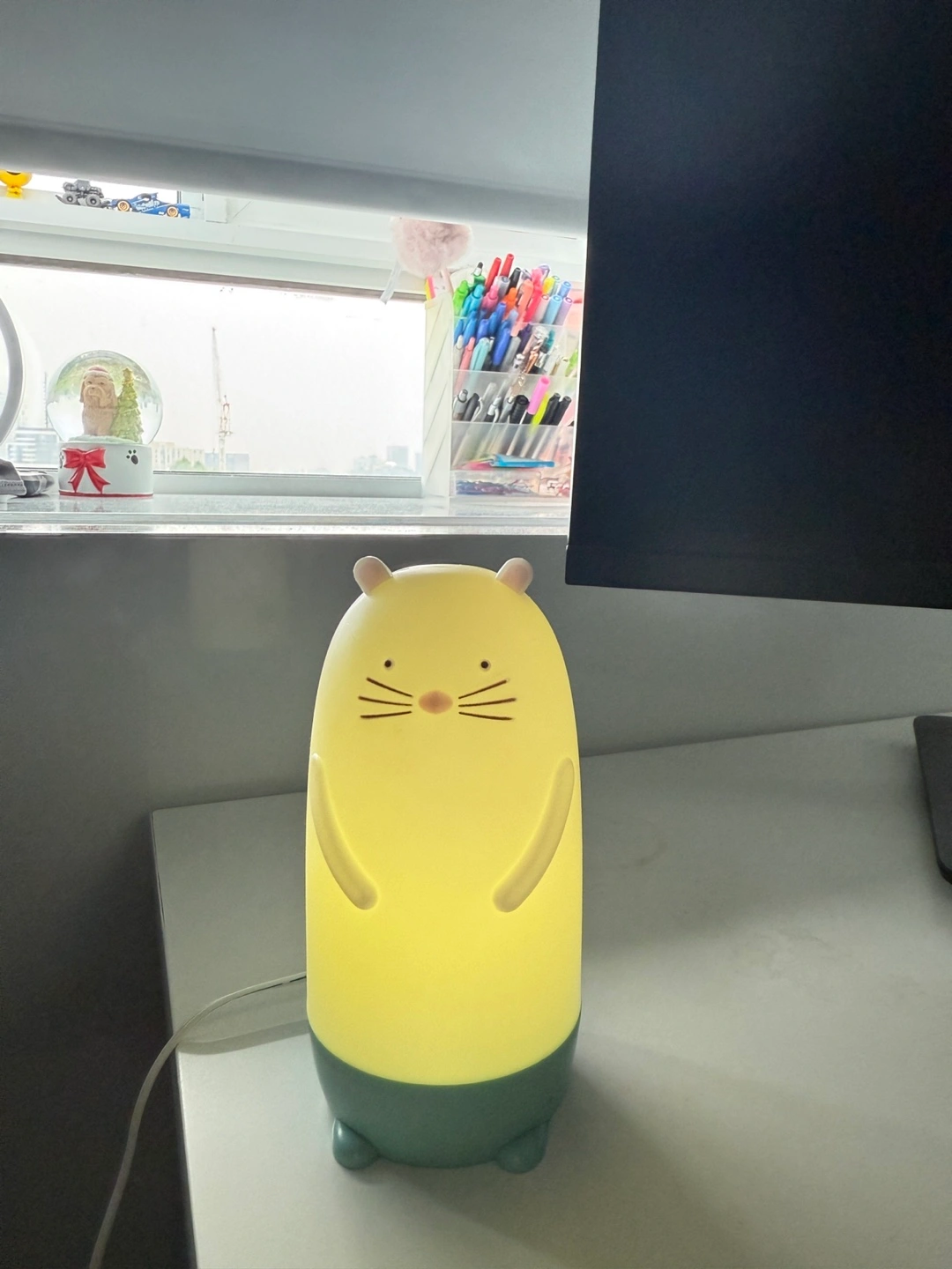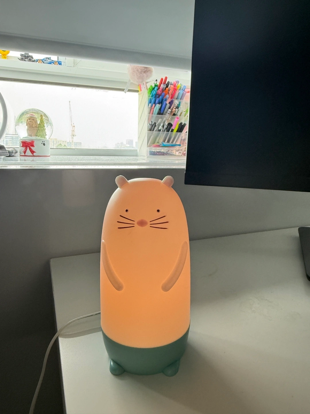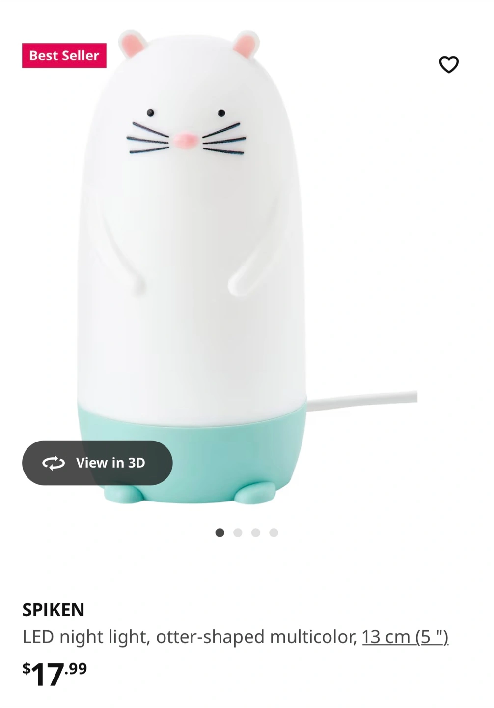 Barely used. The original price is 18 at ikea. A night light shaped like a cute animal. It features a simple design and emits a soft, calming glow with different color settings. It will make bedtime a cozy and comforting experience.