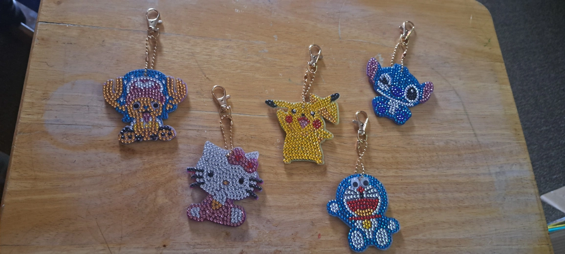 Check out these adorable cartoon character keychains! They're perfect for adding a touch of fun to your keys, backpack, or purse. There's a variety of characters to choose from, including Hello Kitty, Pikachu, Stitch, Doraemon and Chopper! $4 each