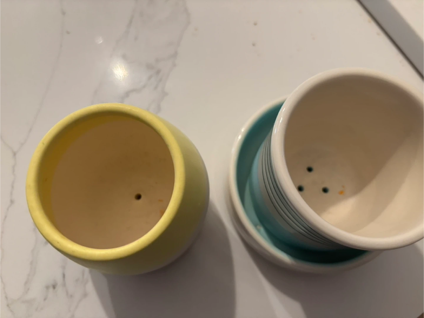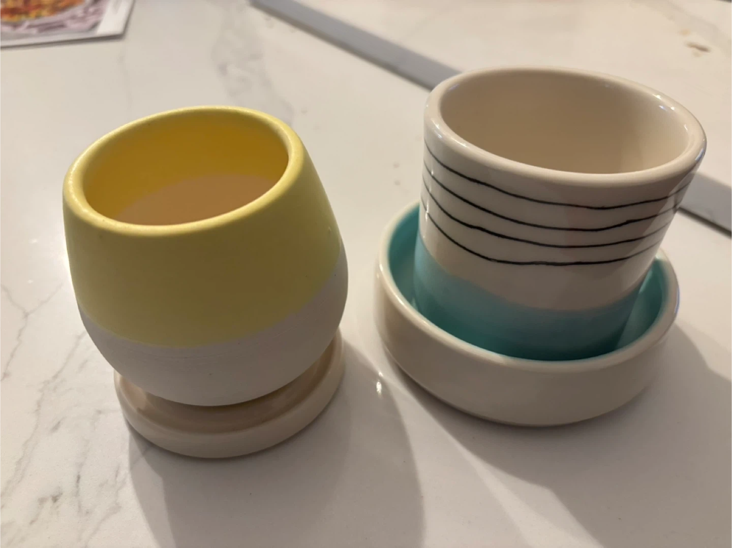 1000+I have a set of two cute ceramic planters for sale! One is yellow and white, and the other is white, blue and black. They're perfect for small plants or succulents to add a touch of colour to your home $10 each