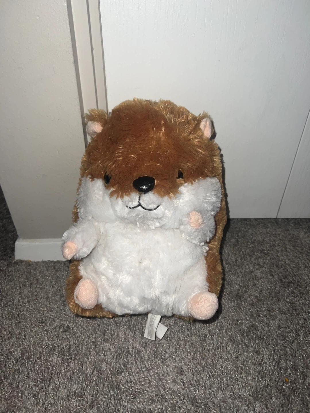 Selling a super cute hamster plush toy! It's in great condition and ready for a new home. Perfect for kids or anyone who loves cuddly animals