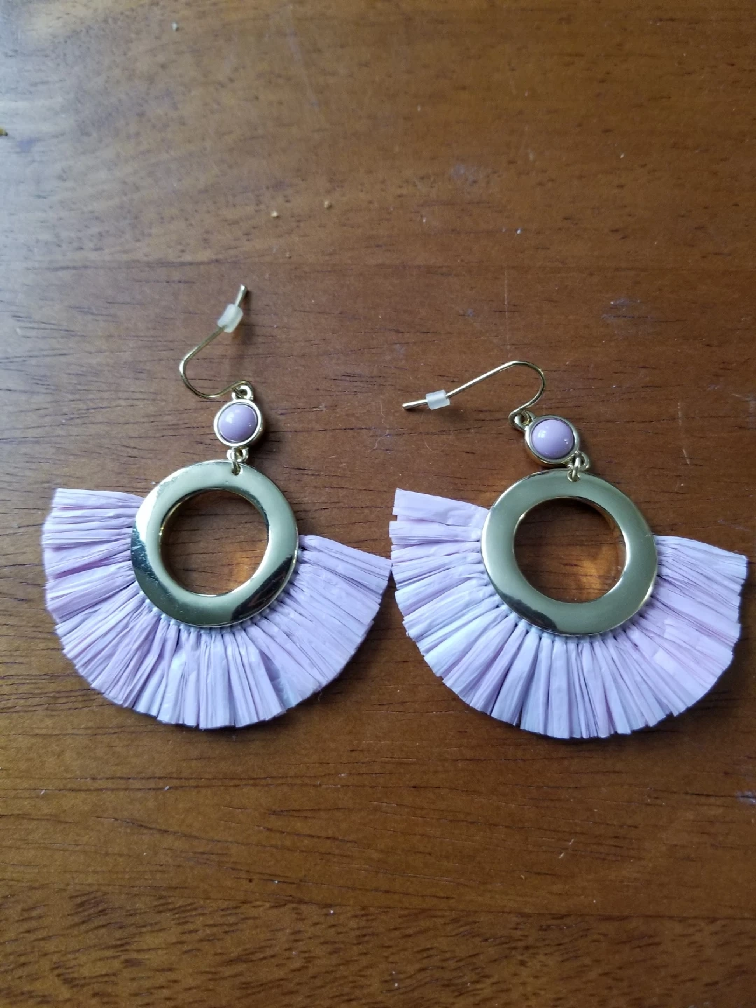 240Selling a pair of lilac fringe earrings! They have a gold-tone ring and a small lilac bead detail at the top. Perfect for adding a pop of colour to any outfit Brand new