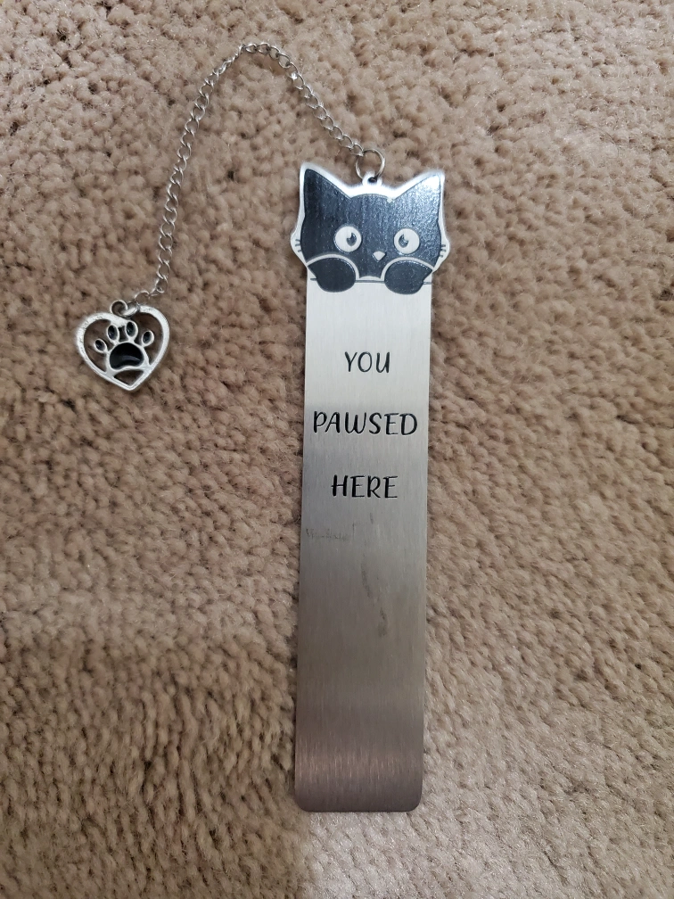 Cute metal bookmark featuring a black cat design and a paw print charm! The bookmark says "You Pawsed Here". Perfect for any book lover! Brand new, has not been used.