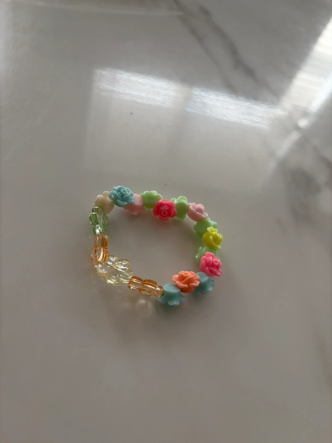 75A super cute bracelet with pastel coloured flower beads and clear crystal beads. Perfect for adding a pop of colour to any outfit!