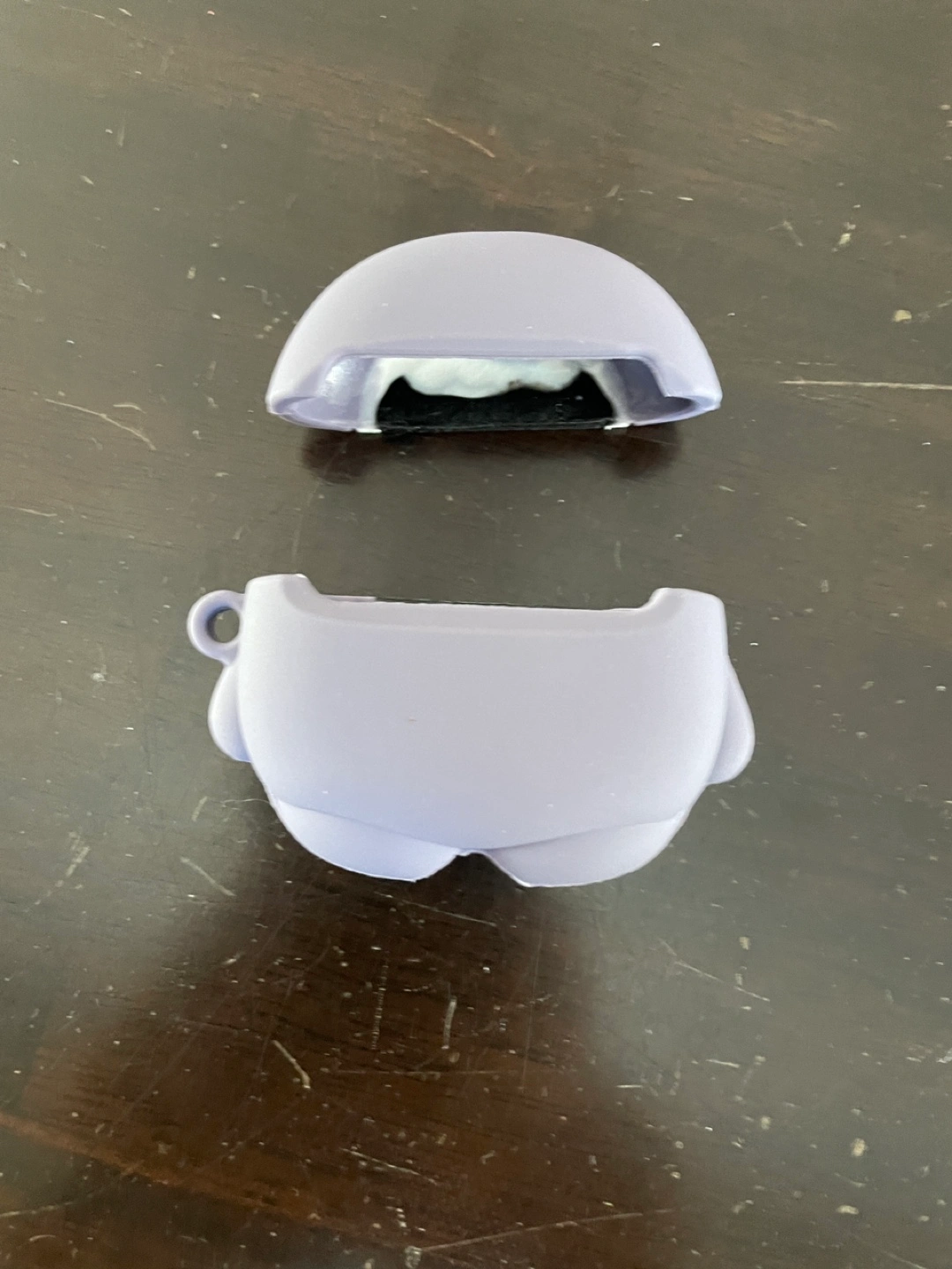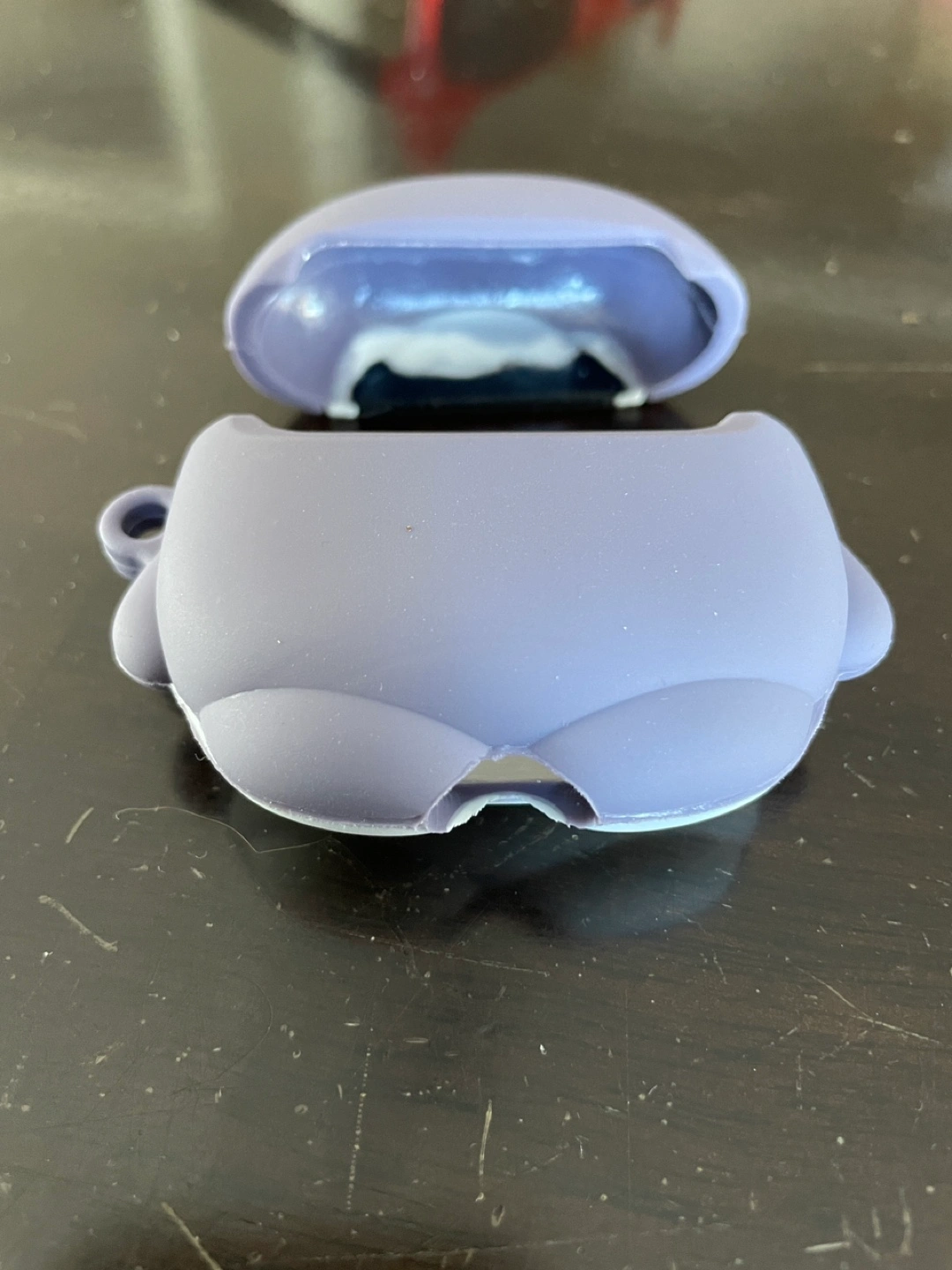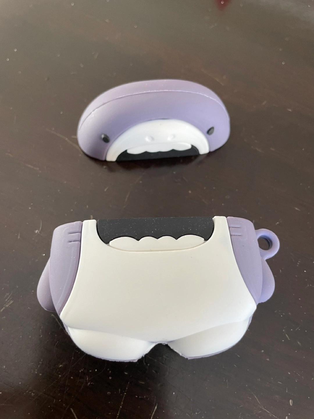 33Adorable purple and white shark Airpod case. Silicone material. Small hole on bottom for charging. Keychain attachment.
